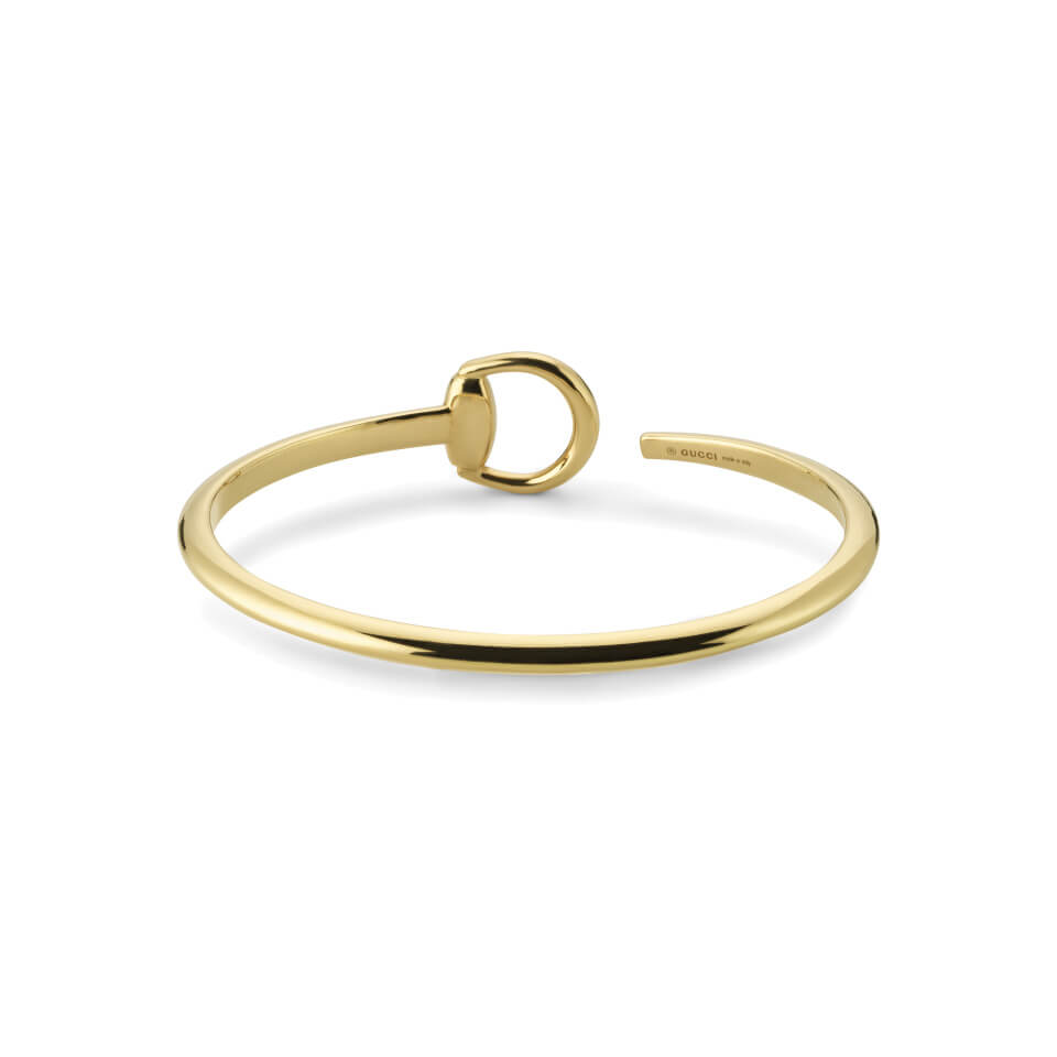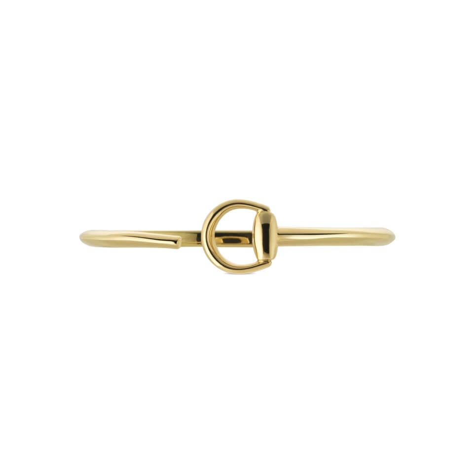 Zum 20-jährigen Jubiläum der charakteristischen Horsebit-Schmucklinie präsentiert Gucci eine Kollektion klassischer, ikonischer Schmuckstücke aus 750/- Gelbgold. Diese Armspange hebt das unverwechselbare Horsebit-Detail in einer einzigartigen Variation mit halbem Horsebit hervor und zelebriert damit die zeitlose Eleganz und Tradition der Marke.Produktspezifikationen