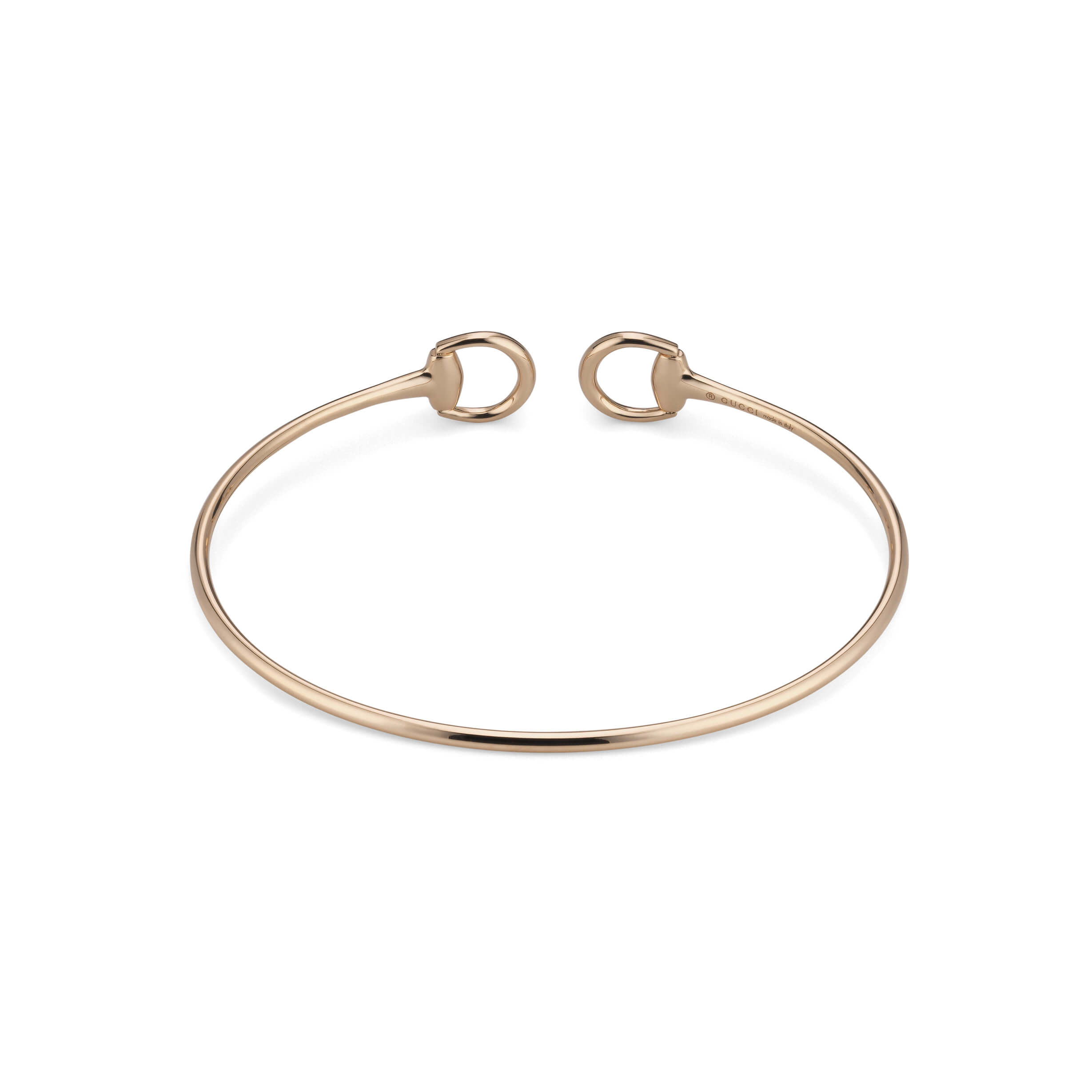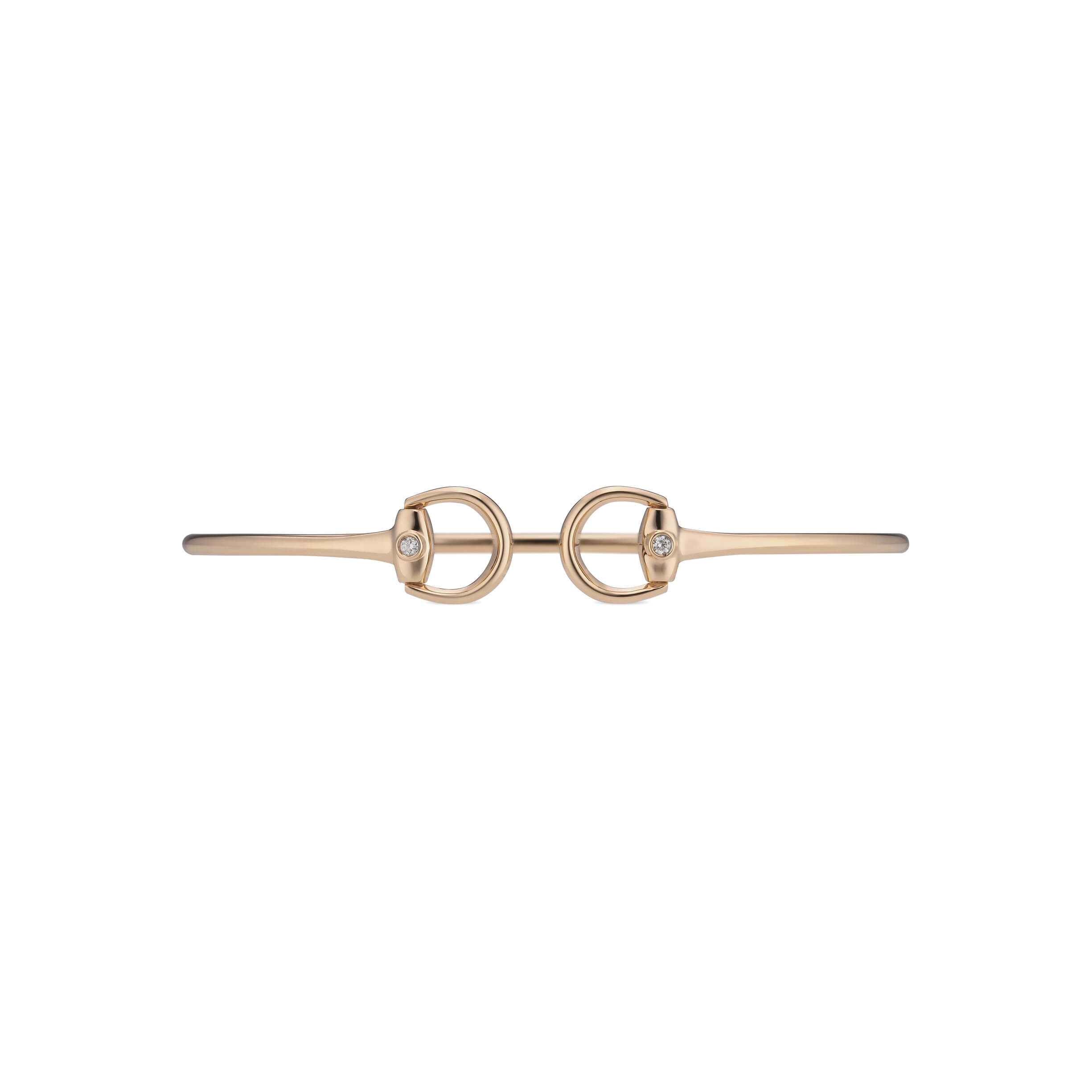 Gucci erweitert seine Horsebit-Kollektion um Schmuckstücke aus Roségold, verziert mit funkelnden Diamanten. Diese Armspange interpretiert das vom Reitsport inspirierte Motiv elegant in Form von zwei Details mit halbem Horsebit.Produktspezifikationen