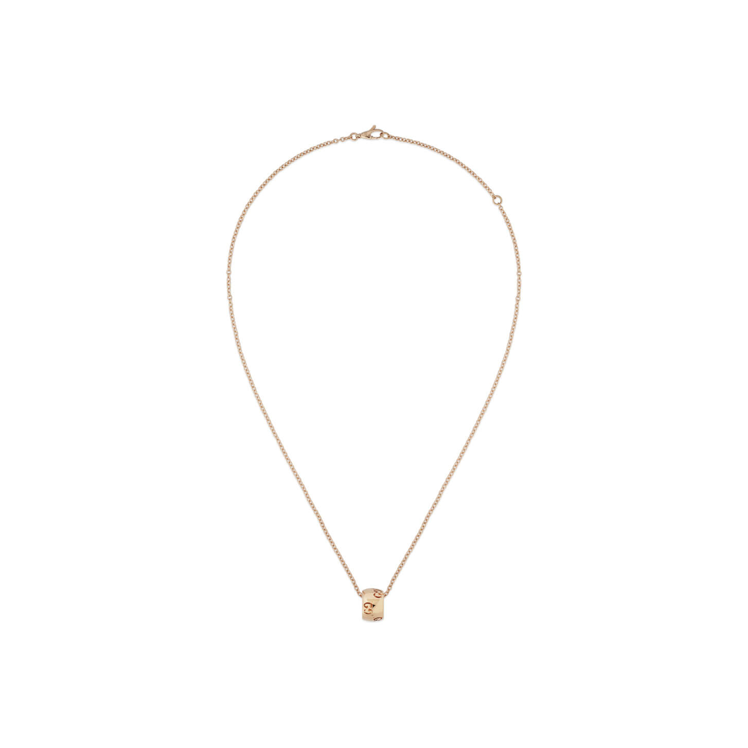 Für Herbst/Winter 2024 erweitert die Icon Schmuckkollektion ihr Design um weiche Silhouetten mit einem neuen GG Cut-out-Detail. Das ikonische Motiv des Hauses schmückt den Anhänger einer Halskette aus 750/- Rotgold. Dank verstellbarer Länge lässt sich die Kette vielseitig und stilvoll tragen.Produktspezifikationen