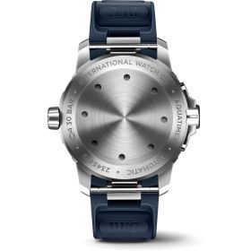 Aquatimer Automatic mit dem IWC-Manufakturkaliber 32111 - Edelstahlgehäuse, blaues Zifferblatt und blaues Kautschukarmband. Eine robuste Konstruktion, hohe Druckfestigkeit, einfache Ablesbarkeit und innovative technische Funktionalität: Das sind die wichtigsten Merkmale der Aquatimer-Taucheruhren, die IWC seit 1967 entwickelt und die sowohl von professionellen als auch von Sporttauchern genutzt werden. Die Aquatimer Automatic ist eine bis 30 bar wasserdichte Taucheruhr in einem 42-Millimeter-Gehäuse aus korrosionsbeständigem Edelstahl. Die tauchrelevanten Anzeigen auf dem blauen Zifferblatt sind mit Leuchtmasse beschichtet, um eine optimale Ablesbarkeit unter Wasser zu gewährleisten. Im Inneren arbeitet das IWC-Manufakturkaliber, das über einen automatischen Aufzug verfügt und eine Gangreserve von 120 Stunden speichert.Produktspezifikationen