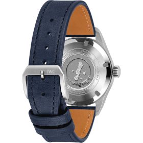 Mit ihrem 36 Millimeter grossen Edelstahlgehäuse spricht die Pilot’s Watch Automatic 36 „Le Petit Prince“ all jene an, die Wert auf eine ausgewogene Kombination aus Funktionalität und zeitloser Eleganz legen. Die Sonderedition von IWC Schaffhausen ist eine Hommage an das berühmte Werk von Antoine de Saint-Exupéry und besticht durch ihr tiefblaues Zifferblatt mit feinem Sonnenschliff, das der Uhr eine besondere optische Tiefe verleiht. Leuchtende Ziffern und Indizes sowie vergoldete, mit Super-LumiNova® beschichtete Zeiger gewährleisten eine hervorragende Ablesbarkeit – auch bei eingeschränkten Lichtverhältnissen. Die Rückseite unterstreicht den poetischen Charakter der Uhr: Eine fein gearbeitete Gravur des kleinen Prinzen ziert den Edelstahlboden und setzt eine dezente, aber bedeutungsvolle Referenz an Der kleine Prinz. Im Inneren arbeitet das Manufakturkaliber 32102 mit automatischem Aufzug und einer beeindruckenden Gangreserve von bis zu 120 Stunden. Es steht für Zuverlässigkeit, Effizienz und dauerhafte Präzision im täglichen Einsatz. Abgerundet wird das Modell durch ein blaues Kalbslederarmband mit Edelstahl-Dornschliesse, das hohen Tragekomfort bietet und die klassische Ausstrahlung der Uhr stilvoll ergänzt.Produktspezifikationen