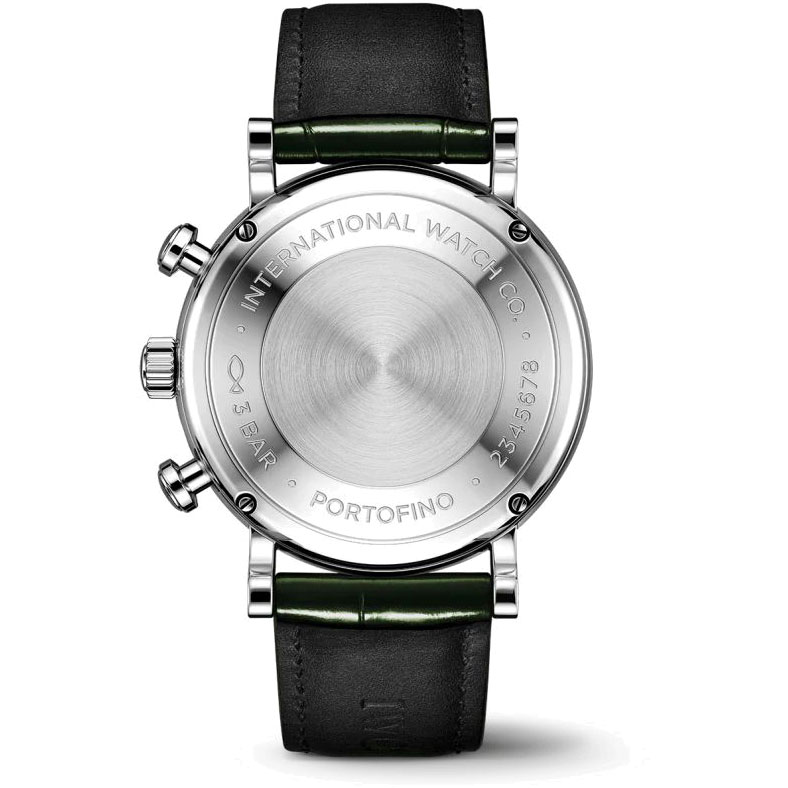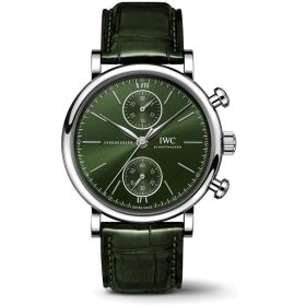 IWC Portofino Chronograph 39, Edelstahl Gehäuse, Automatikaufzug, Durchmesser 39 mm, Grünes Alligatorlederarmband. 79350 Kaliber Automatikaufzug 44 Stunden Gangreserve.Produktspezifikationen