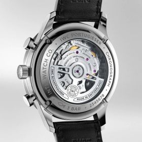 Der Portugieser Chronograph ist eines der ikonischsten Modelle von IWC Schaffhausen. Mit seinem kompakten Durchmesser von 41 Millimetern passt er an fast jedes Handgelenk. Durch die filigrane Lünette entsteht jedoch der Eindruck, als würde man eine bedeutend grössere Uhr tragen. Das klare, funktionale Zifferblatt besticht mit applizierten arabischen Zahlen und schlanken Feuille-Zeigern. Der charakteristische, mit einer Viertelsekundenskala bedruckte Rehaut ermöglicht nicht nur ein präzises Ablesen der Stoppzeit, sondern erinnert auch an den Ursprung der Portugieser als nautisches Präzisionsinstrument für das Handgelenk. Dieses Modell verfügt über ein Gehäuse aus Edelstahl, ein schwarzes Zifferblatt sowie rhodinierte Zeiger und Appliken. Es wird an einem schwarzen Armband aus Alligatorleder getragen. Im Inneren des sportlich-eleganten Chronographen arbeitet das IWC-Manufakturkaliber 69355 mit 46 Stunden Gangreserve. Das robuste und präzise Chronographenwerk in klassischer Kolonnenradbauweise lässt sich durch einen Sichtboden aus Saphirglas betrachten.Produktspezifikationen