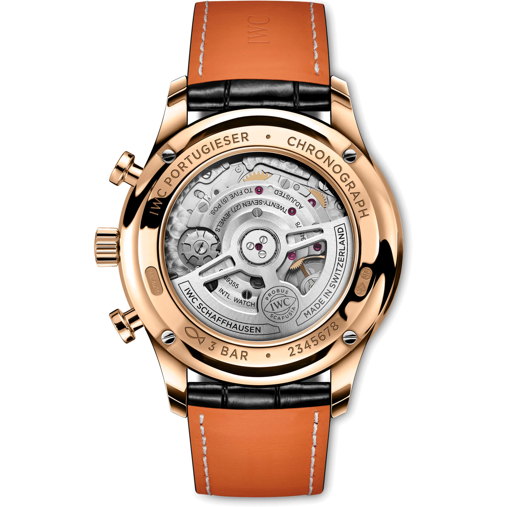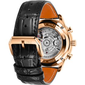 Die Portugieser Chronograph bereichert seit 1998 die Portugieser-Kollektion von IWC Schaffhausen um eine sportlich-elegante Facette. Charakteristisch ist die markentypische, vertikale Anordnung der Totalisatoren: Die gestoppten Minuten werden bei 12 Uhr angezeigt, während die kleine Sekunde bei 6 Uhr positioniert ist. Dieses Layout sorgt für eine besonders klare Ablesbarkeit und hat den Chronographen zu einer stilprägenden Ikone gemacht. Ergänzt wird das Design durch den mit einer Viertelsekundenskala versehenen Réhaut, der ein exaktes Erfassen der Stoppzeit ermöglicht.Produktspezifikationen