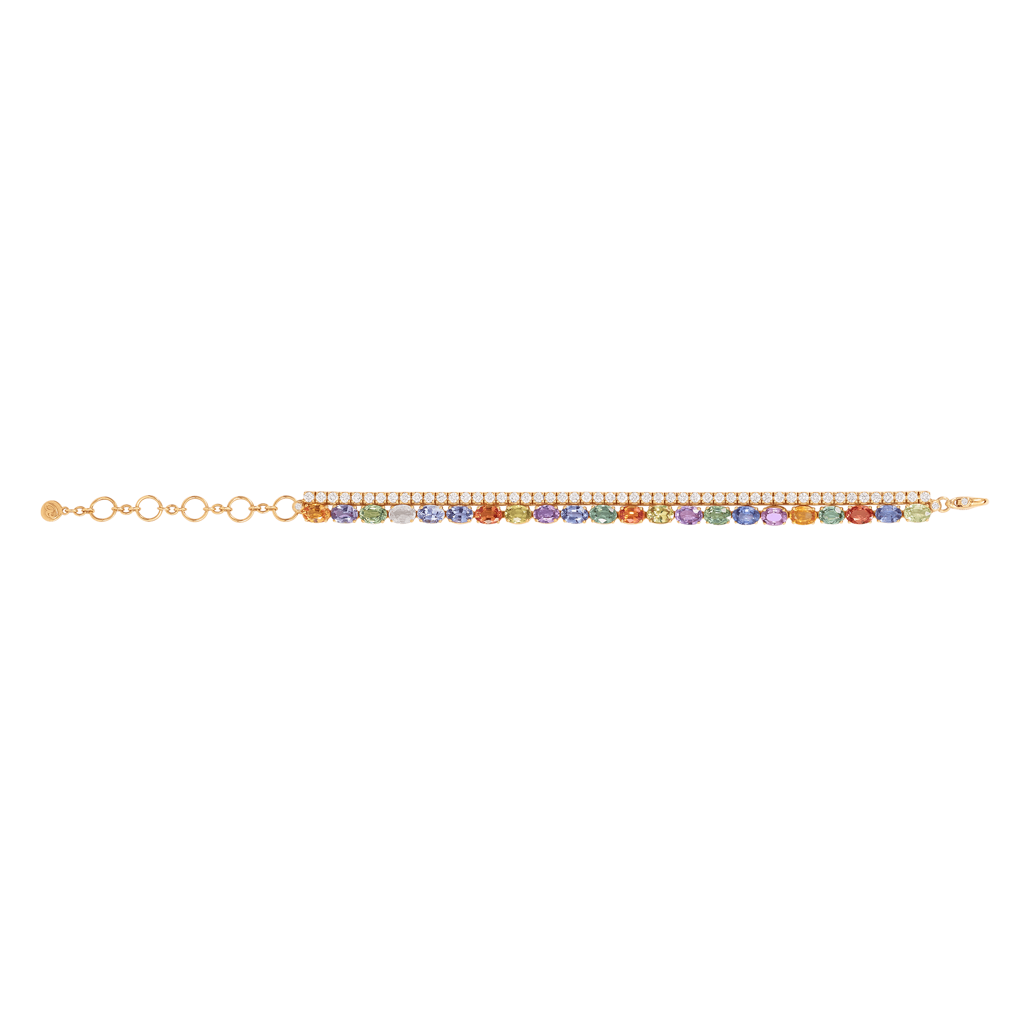 Armband aus 750/- Rotgold mit farbigen Saphiren (12,77 ct.) und Brillanten (2,09 ct.)Produktspezifikationen