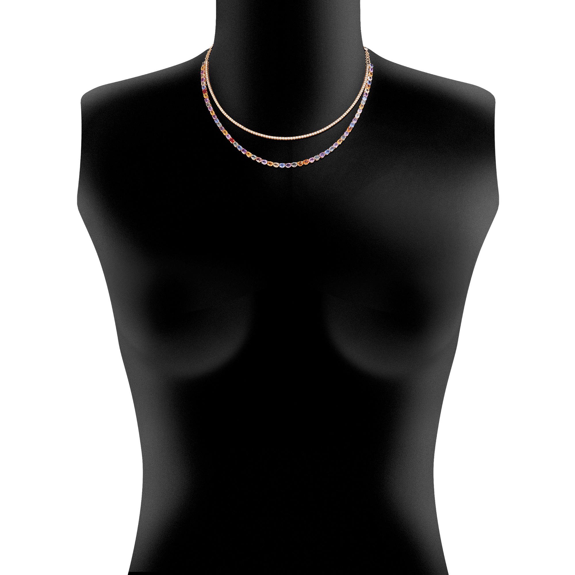Collier aus 750/- Rotgold mit farbigen Saphiren (13,64 ct.), braunen Diamanten (0,12 ct.) und Brillanten (1,15 ct.)Produktspezifikationen