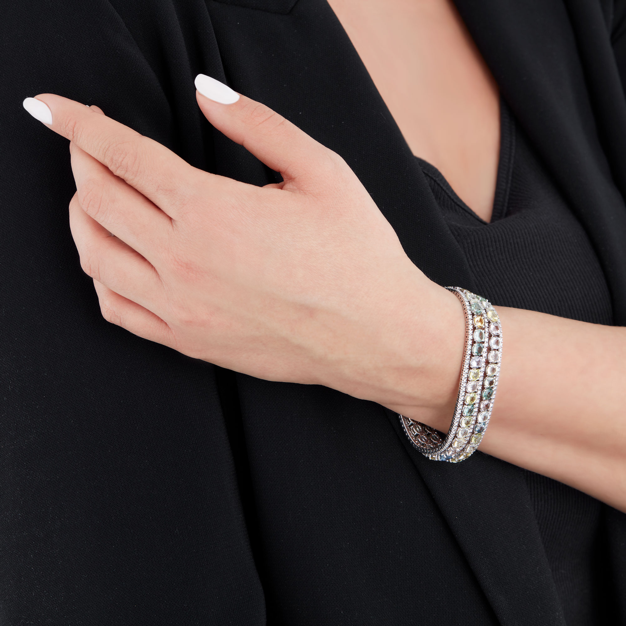 Armband aus 750/- Weißgold mit pastelcolour Saphire (30,61 ct.) und Brillanten (2,18 ct.)Produktspezifikationen