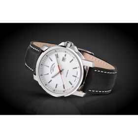 Die Herrenuhr 29er Big mit einem 42,2 mm breiten und 11,3 mm hohen Edelstahlgehäuse bei einer maximalen Wasserdichtigkeit von 10 bar. Das Zifferblatt mit Datumsfenster in Weiß ist zudem Super LumiNova beschichtet und leuchtet bei Dunkelheit nach. Im Herzen der Uhr schlägt das Automatikwerk Kaliber SW 200-1 (Mühle Version) mit einer Gangreserve von 38 Stunden. Präsentiert wird der Zeitmesser an einem schwarzen Lederarmband mit einer Dornschließe aus Edelstahl.Produktspezifikationen