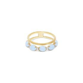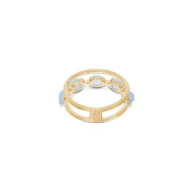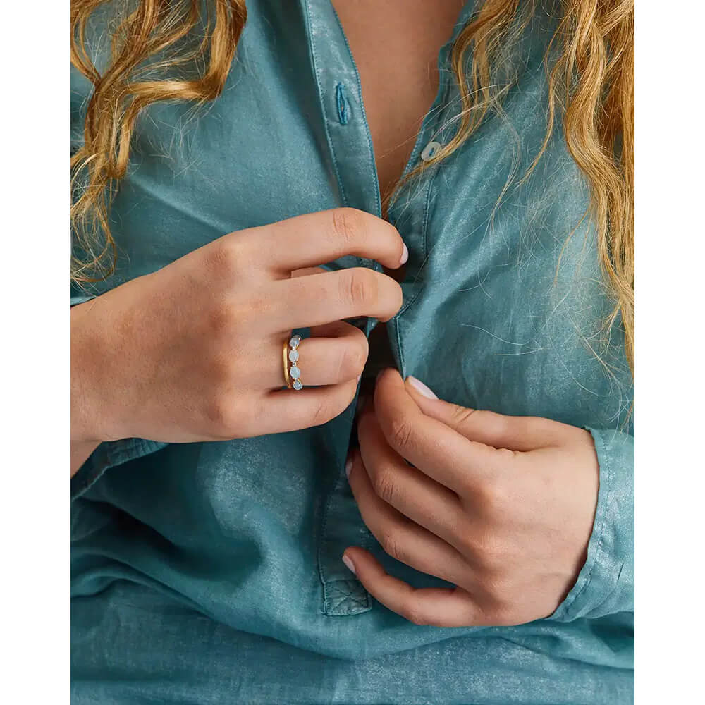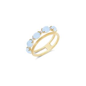 Ein zarter Ring aus 750/- Gelbgold, handgraviert mit der Stichel-Technik und gekrönt von zarten Diamanten und Milky Aquamarin-Kugeln. Der Naturstein steht für inneres Wachstum und Selbstreflexion und verleiht dem Schmuckstück eine anmutige Eleganz, die man stets bei sich trägt.Produktspezifikationen
