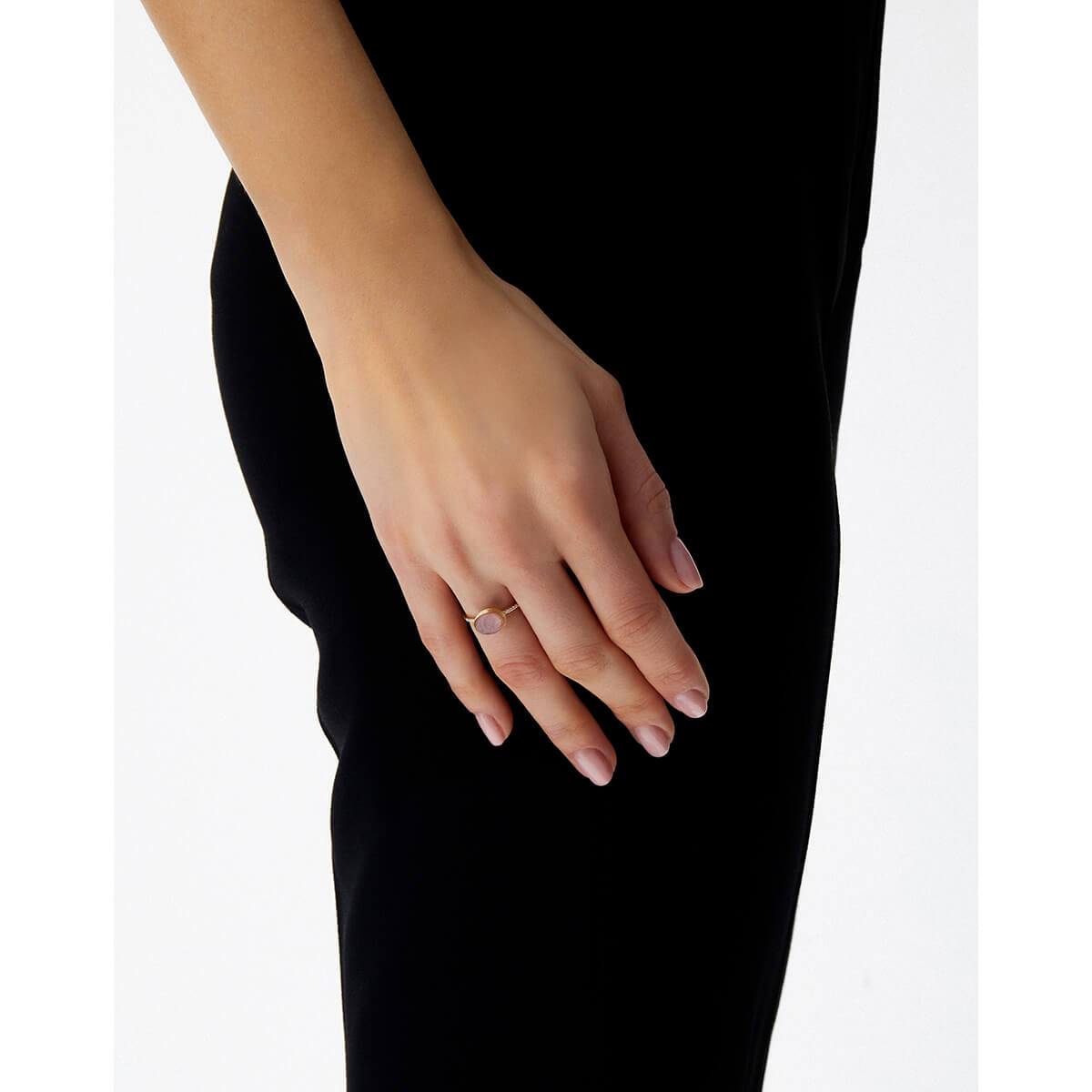 Ring aus 750/- Gelbgold mit Erdbeerquarz, Bergkristall, Perlmutt und Brillanten (0,05 ct.)Produktspezifikationen