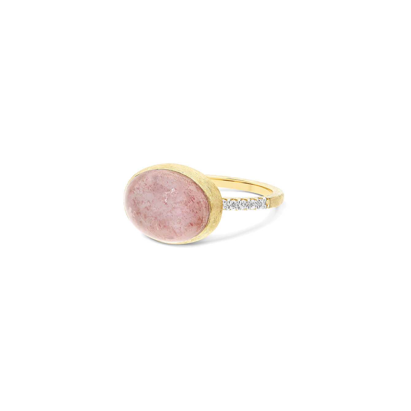 Ring aus 750/- Gelbgold mit Erdbeerquarz, Bergkristall, Perlmutt und Brillanten (0,12 ct.)Produktspezifikationen
