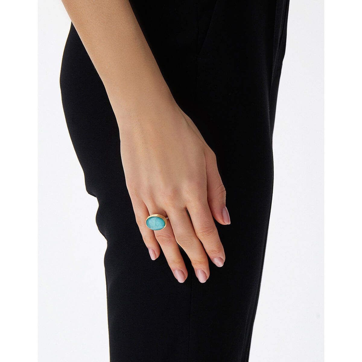 Ring aus 750/- Gelbgold mit Amazonit, Bergkristall und Brillanten (0,12 ct.)Produktspezifikationen