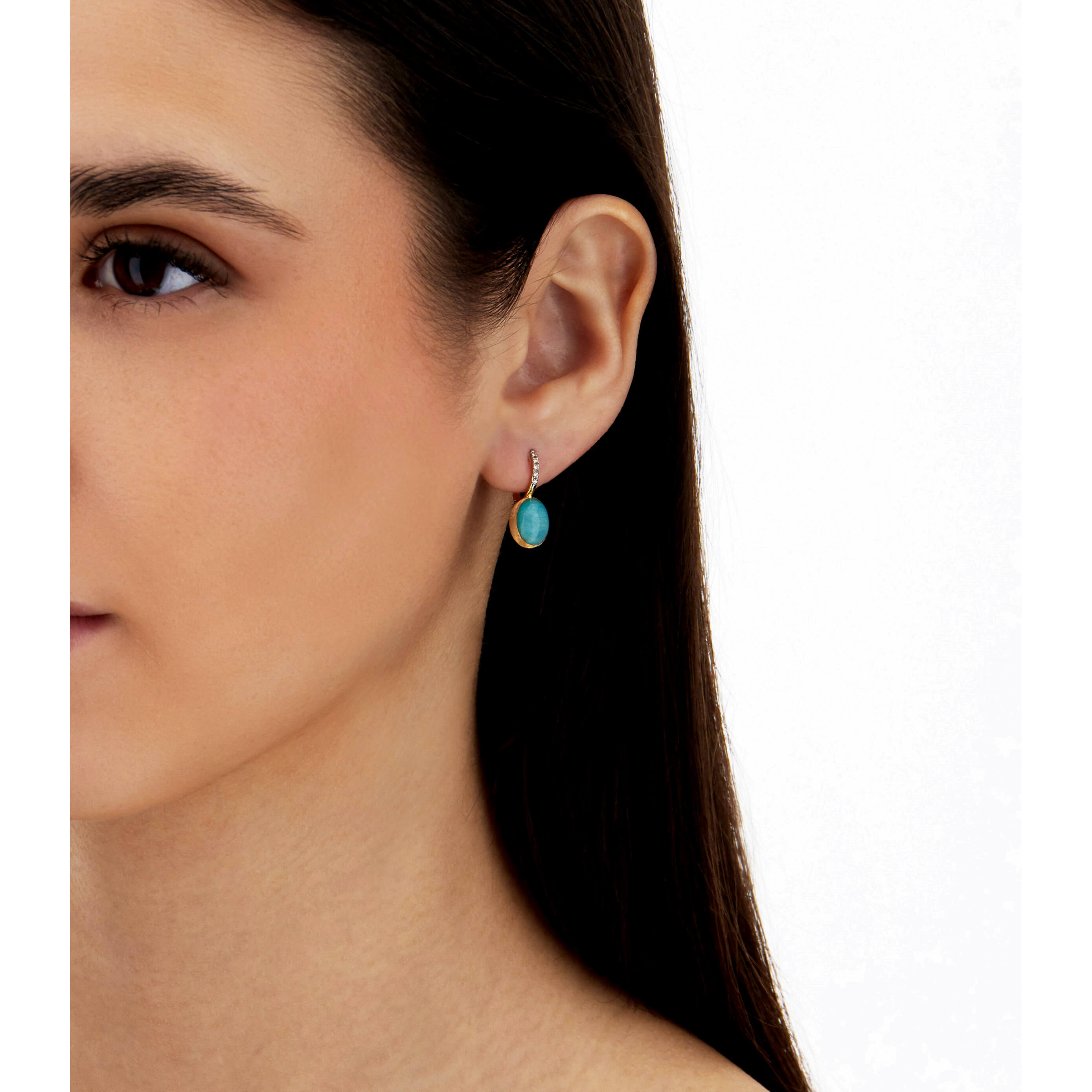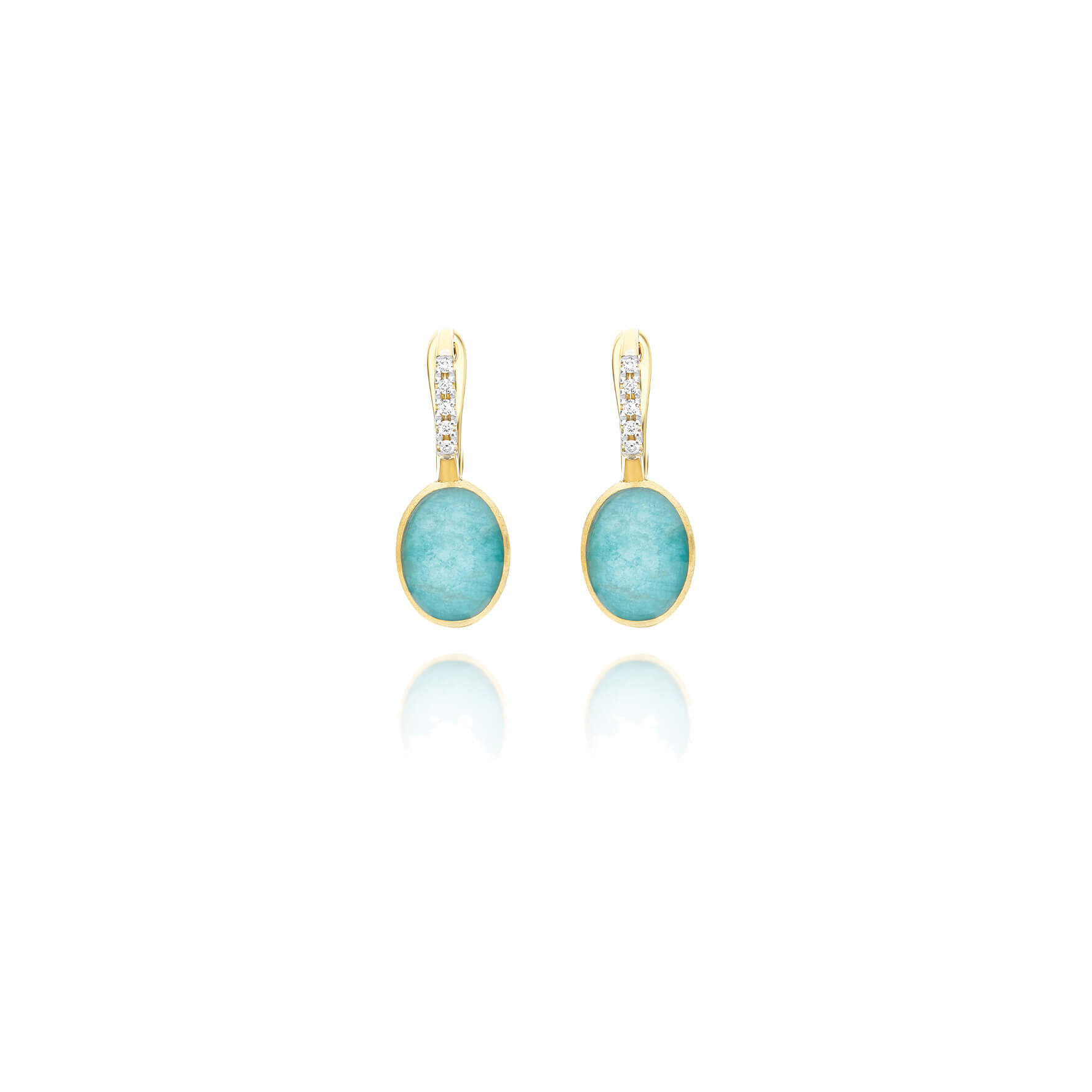 Ohrringe aus 750/- Gelbgold mit Amazonit (3,50 ct.) und Brillanten (0,05 ct.)Produktspezifikationen