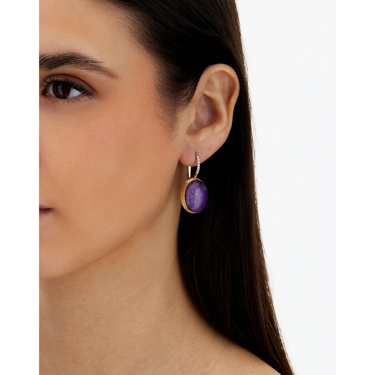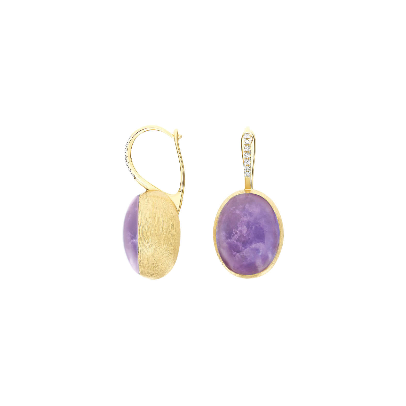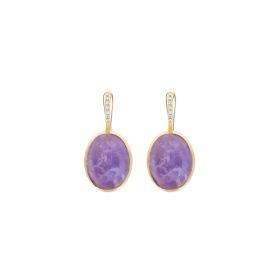 Ohrringe aus 750/- Gelbgold mit Lepidolith, Bergkristall, Perlmutt und Brillanten (0,08 ct.)Produktspezifikationen