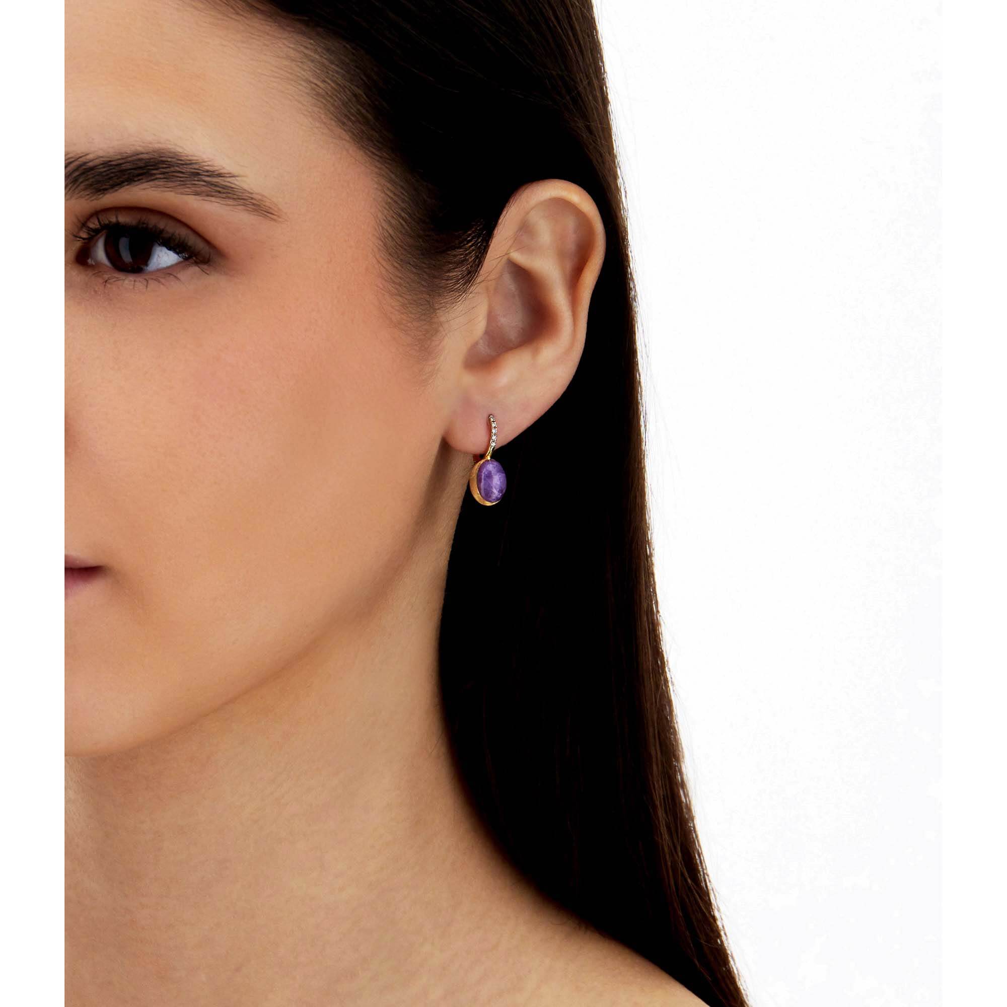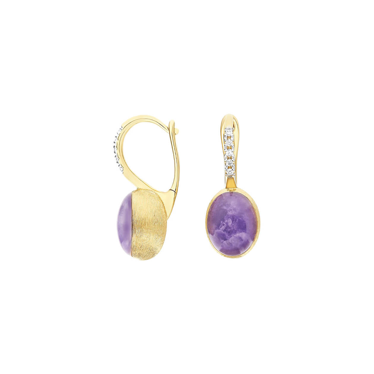 Ohrringe aus 750/- Gelbgold mit Lepidolith, Bergkristall, Perlmutt und Brillanten (0,05 ct.)Produktspezifikationen