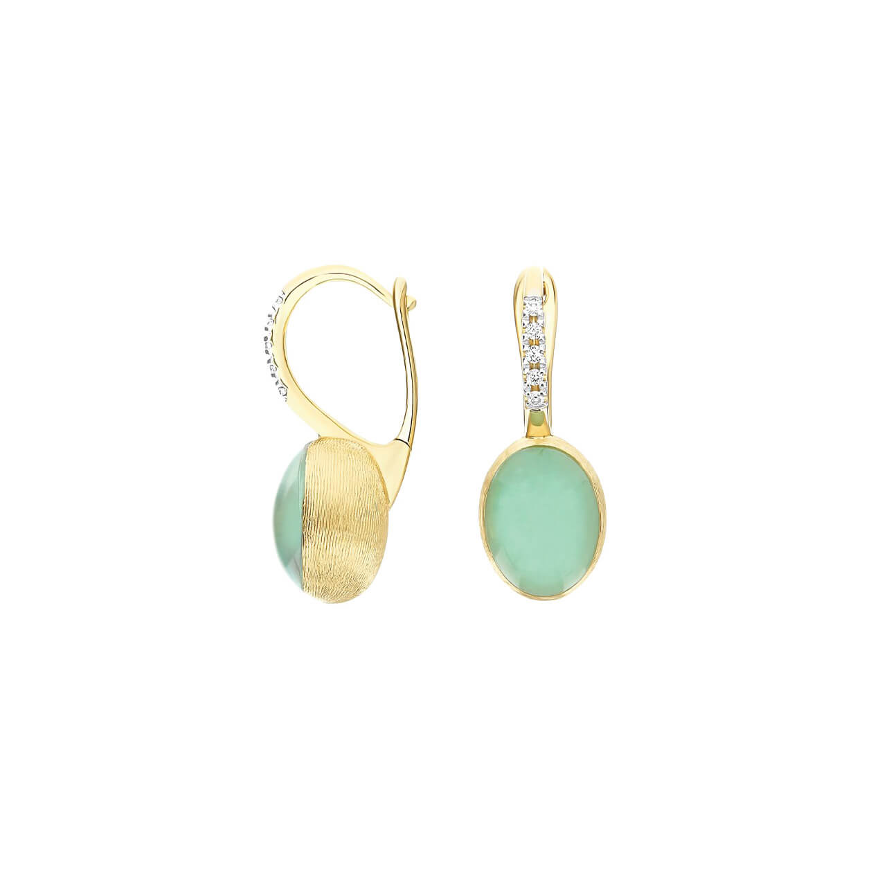 Ohrringe aus 600/- Gelbgold mit Jadeit, Bergkristall und Brillanten (0,05 ct.)Produktspezifikationen