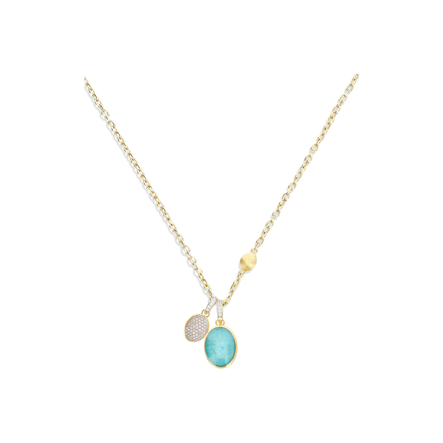 Anhänger aus 750/- Gelbgold mit Amazonit, Bergkristall und Brillanten (0,02 ct.)Produktspezifikationen