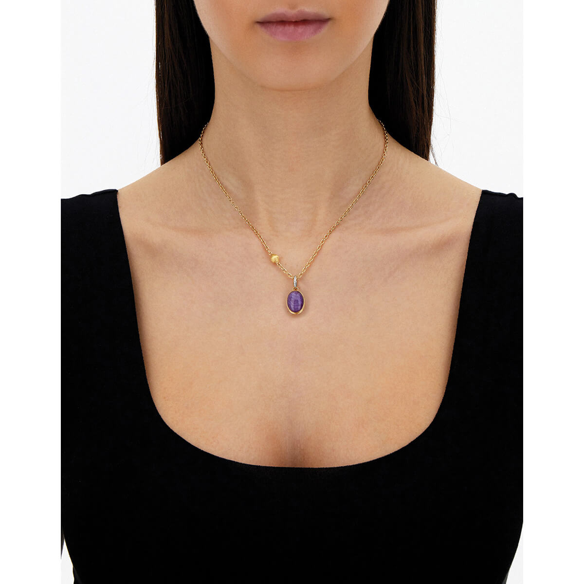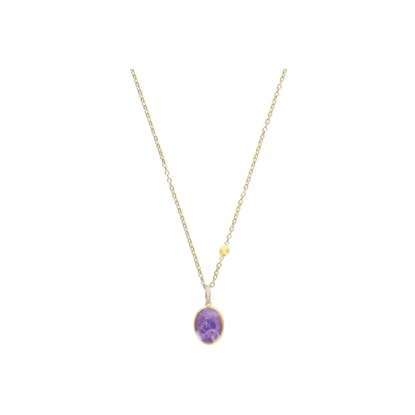 Anhänger aus 750/- Gelbgold mit Lepidolith, Bergkristall, Perlmutt und Brillanten (0,03 ct.)Produktspezifikationen