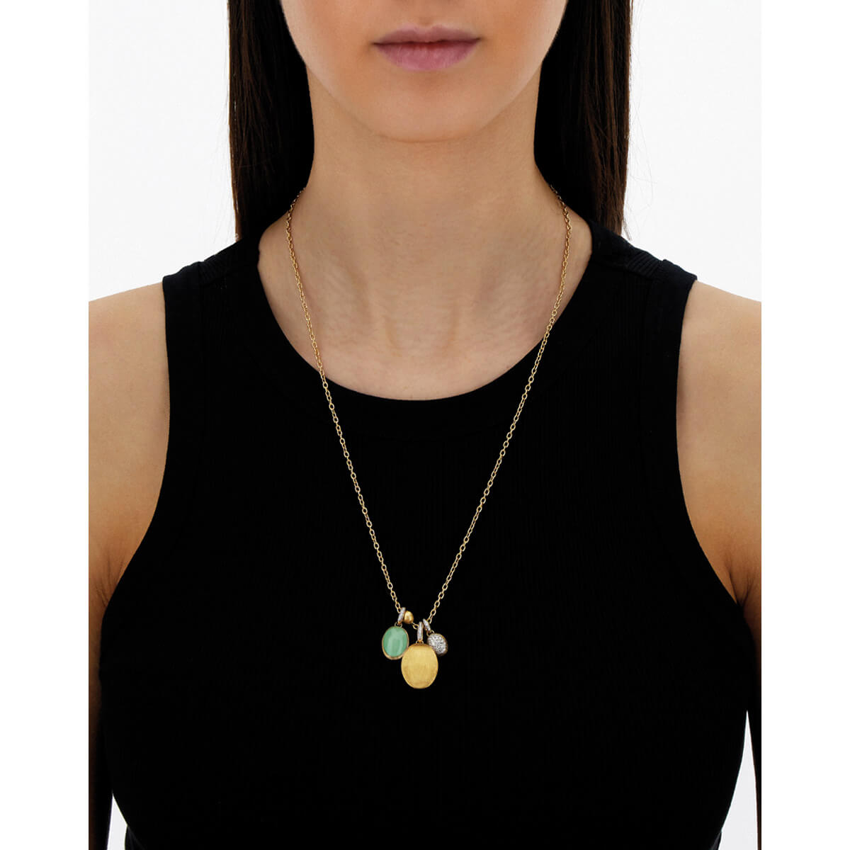 Anhänger aus 750/- Gelbgold mit Jadeit, Bergkristall und Brillanten (0,03 ct.)Produktspezifikationen
