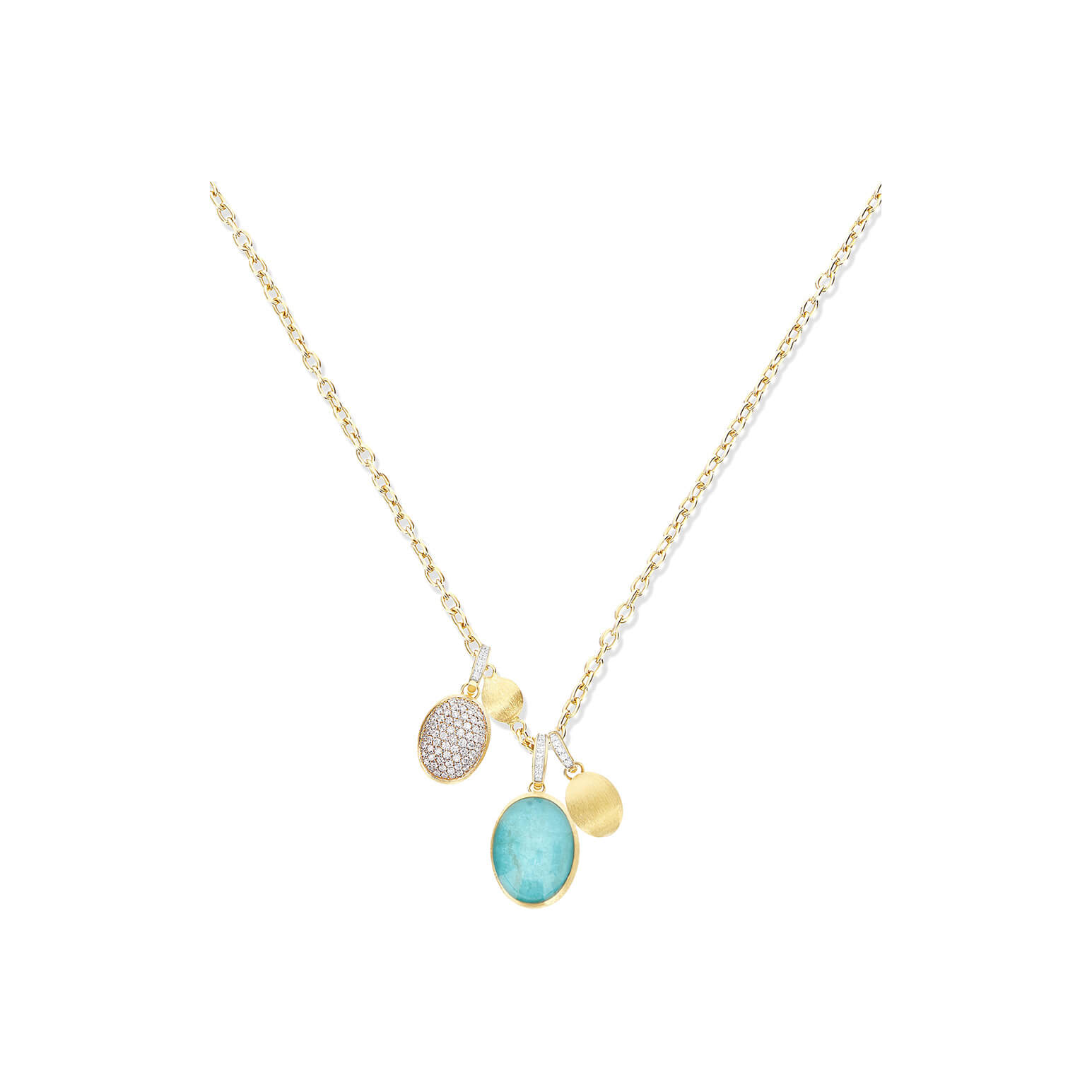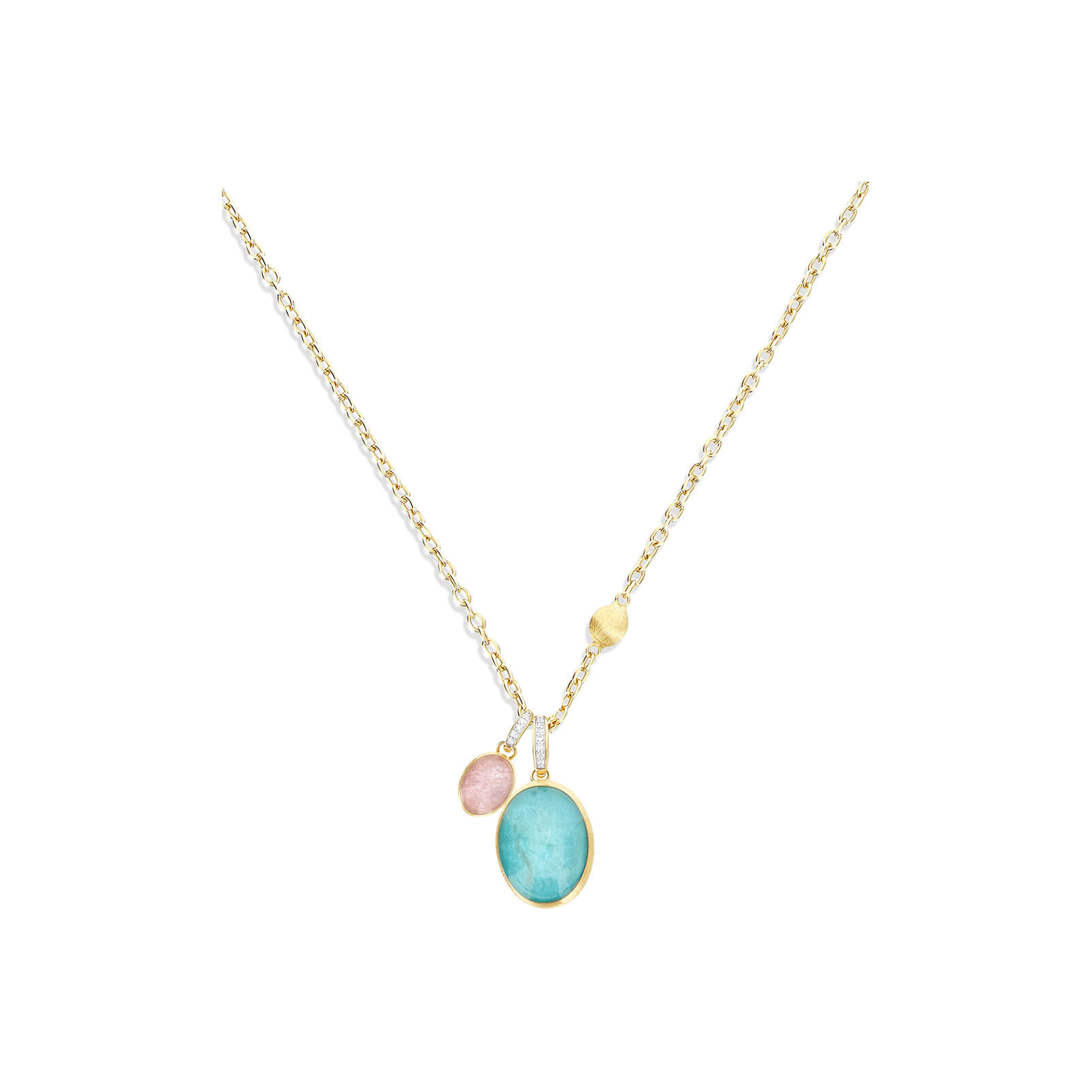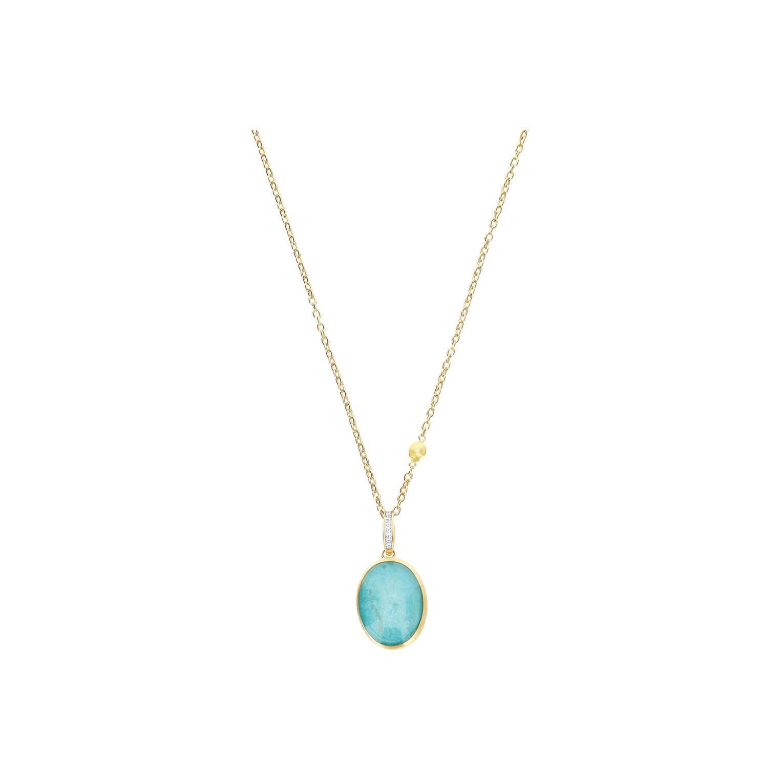 Anhänger aus 750/- Gelbgold mit Amazonit, Bergkristall und Brillanten (0,04 ct.)Produktspezifikationen
