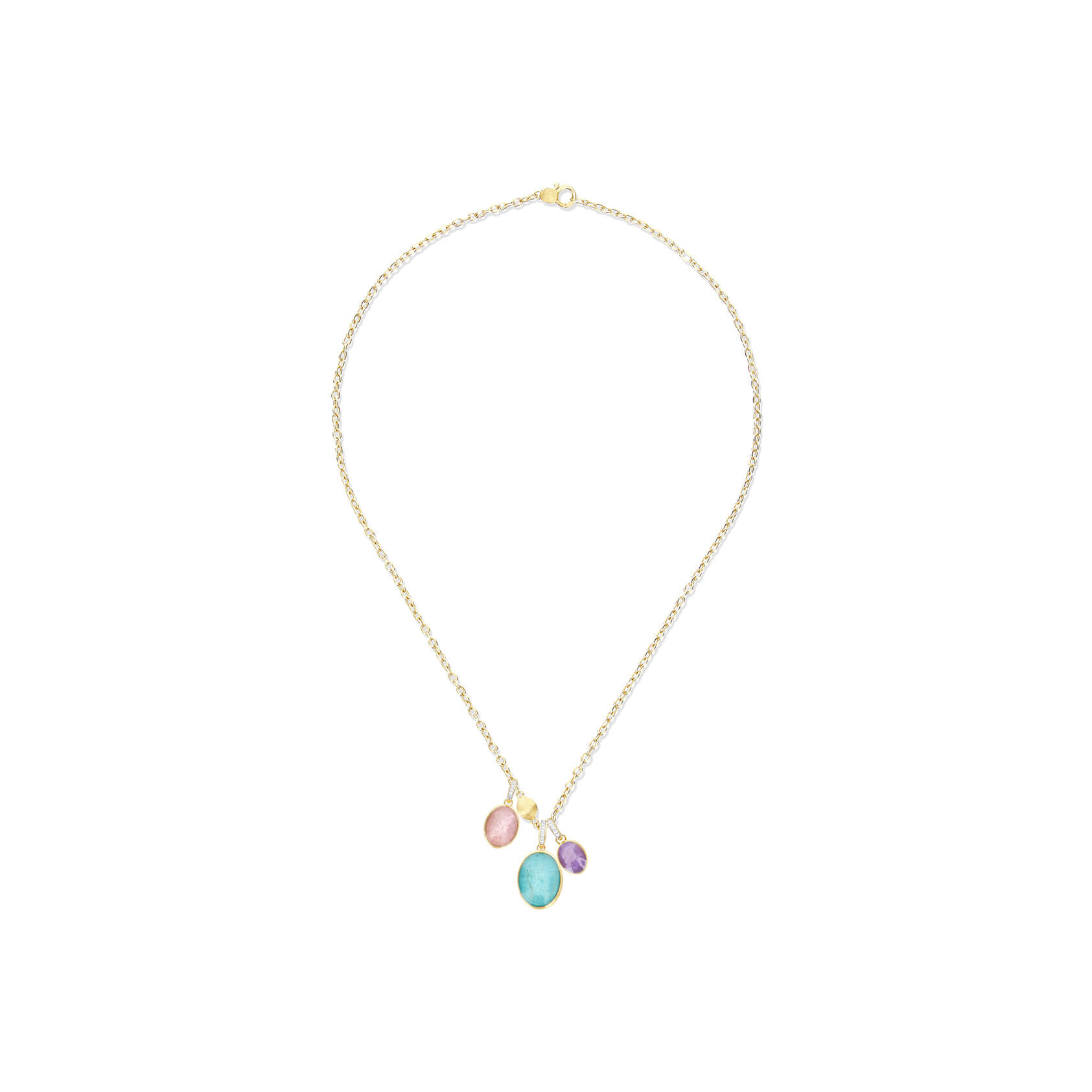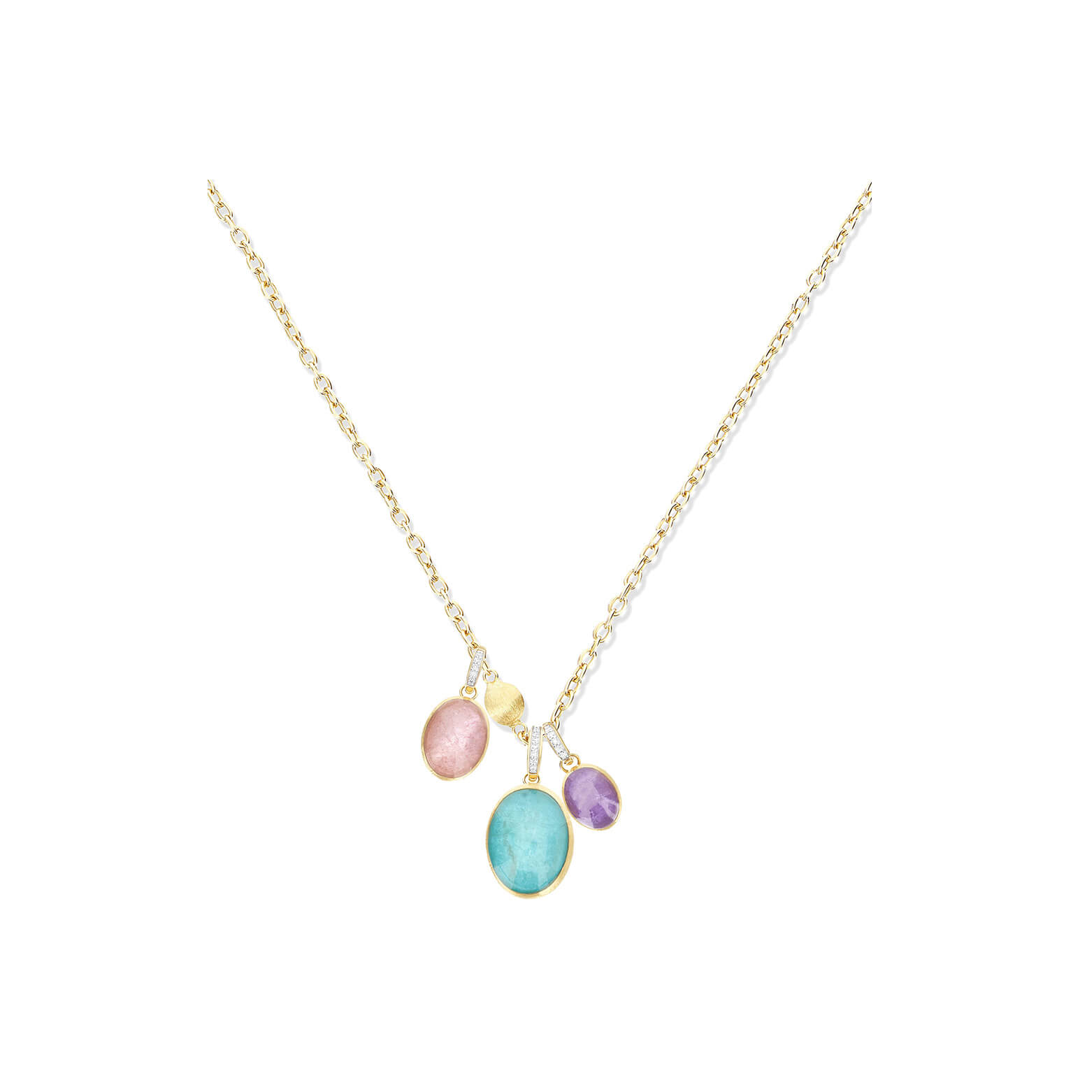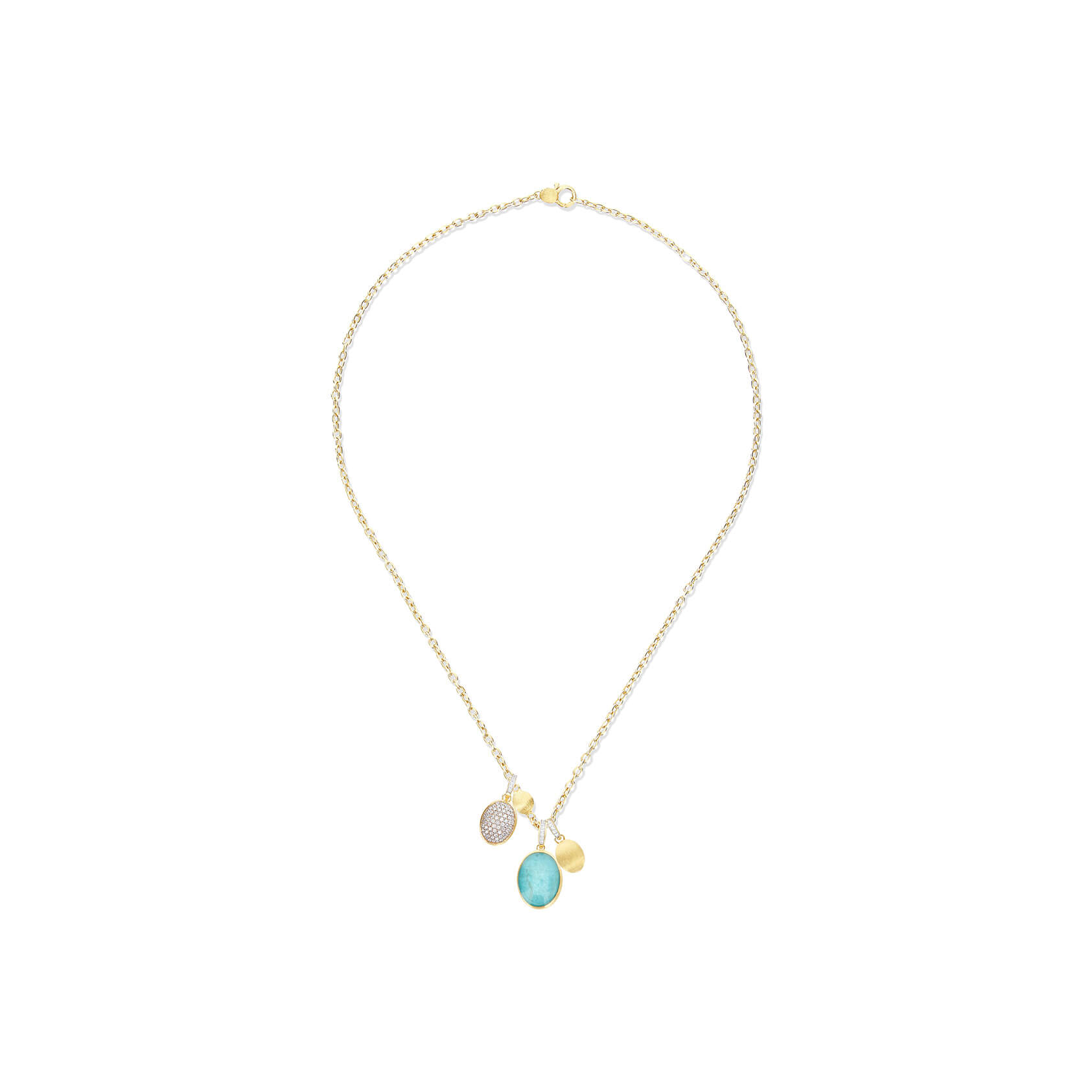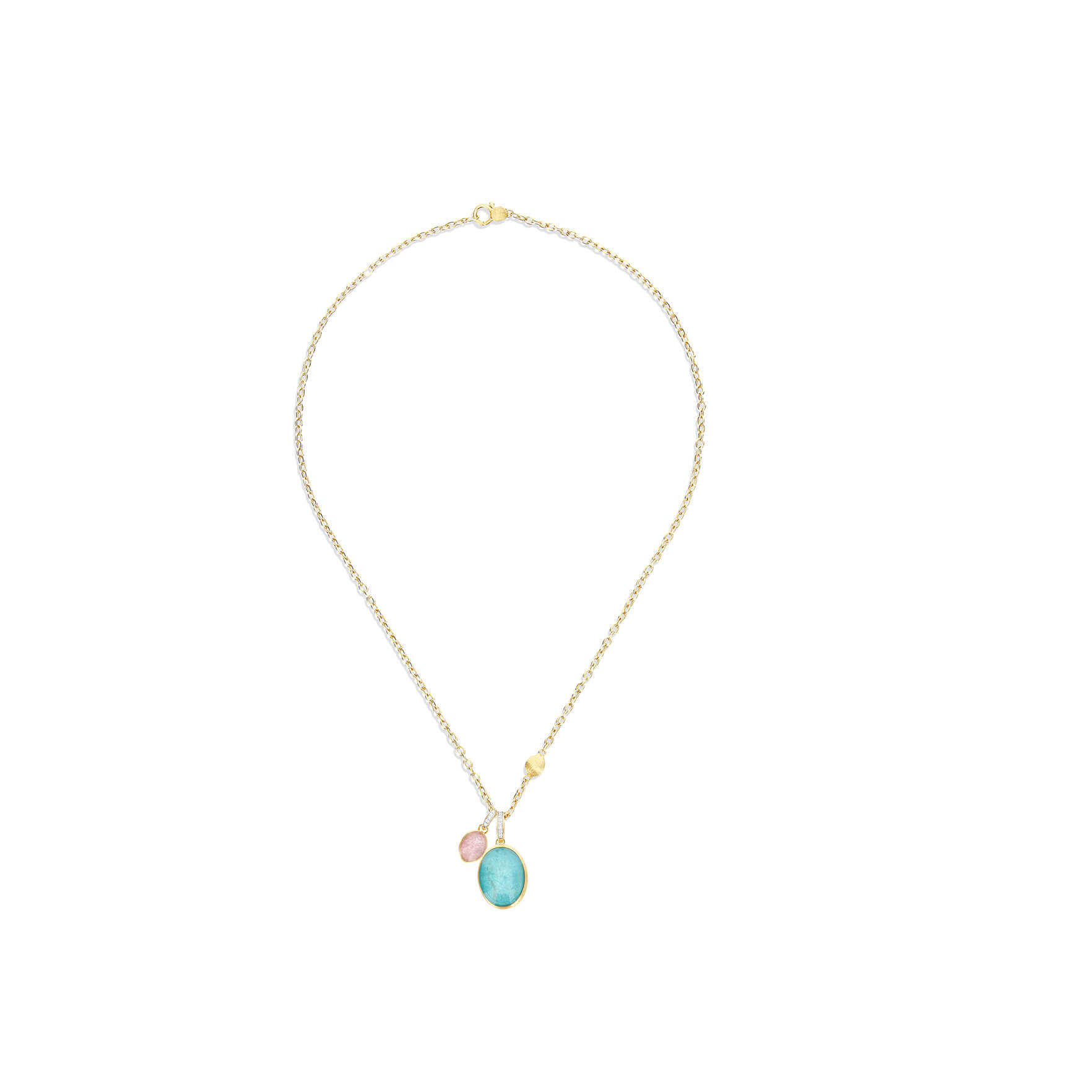 Anhänger aus 750/- Gelbgold mit Amazonit, Bergkristall und Brillanten (0,04 ct.)Produktspezifikationen