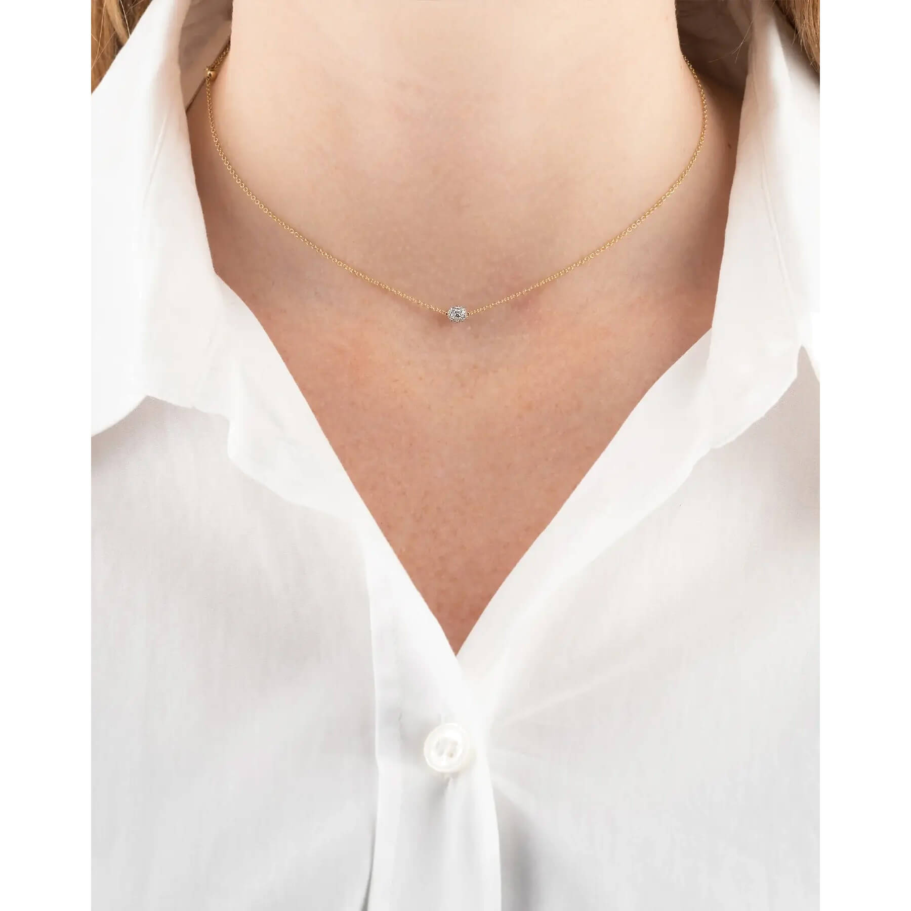 Aus 750/- Gold und Diamanten gefertigt, erweckt diese essentielle und einzigartige Halskette Nanis' Interpretation des Solitärs zum Leben. Sie verkörpert Romantik und Glamour zugleich und ist ein unverzichtbares Juwel in jeder Schmuckschatulle. Vielseitig einsetzbar kann diese Halskette sowohl allein als auch in Kombination mit anderen Anhängern für einen modernen Look getragen werden.Produktspezifikationen