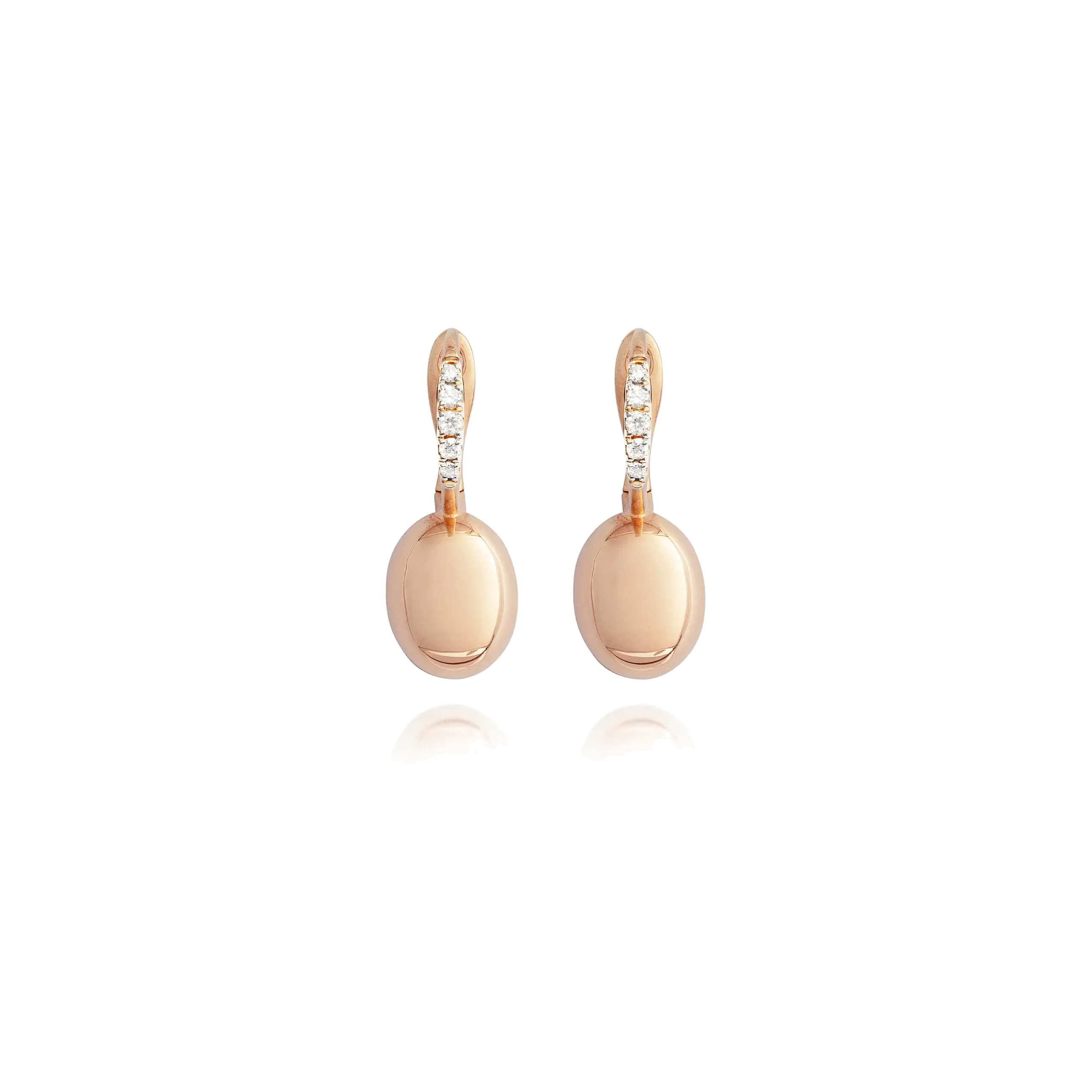 Anmutige "Ciliegine" Ohrringe aus 750/- Roségold und Diamanten zeichnen sich durch ihre glänzende Oberfläche aus, die in Kombination mit den funkelnden Diamanten ein faszinierendes Lichtspiel erzeugt. Dies macht sie perfekt für einen stilvollen, aber dennoch entspannten Look.Produktspezifikationen