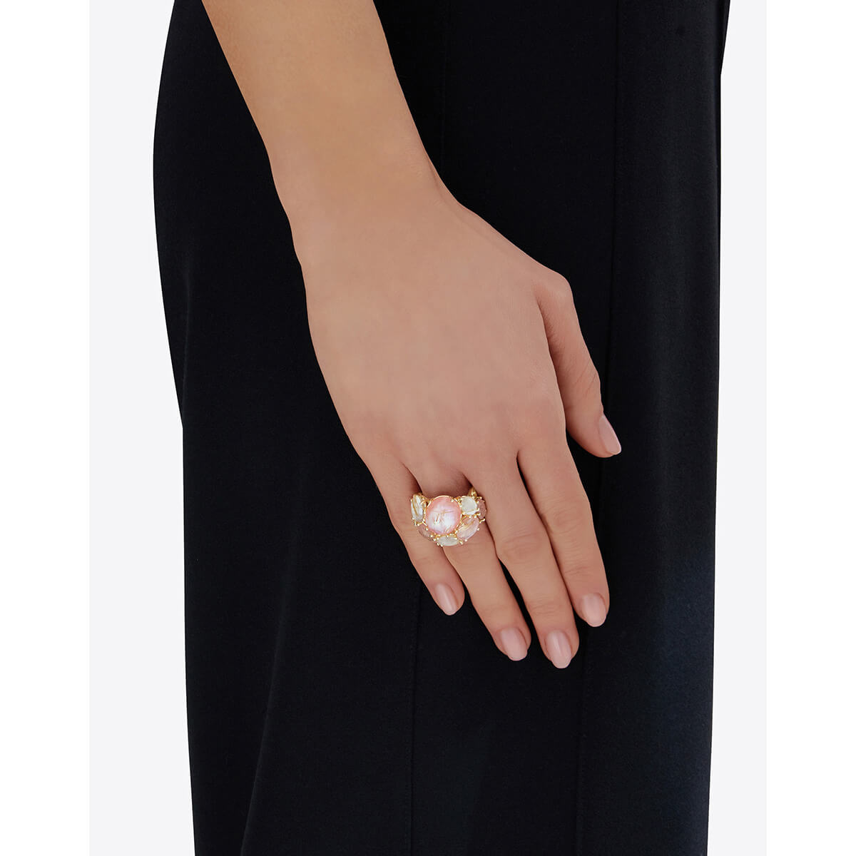 Ring aus 750/- Gelbgold mit Rutilquarz, rosa Jade und PerlmuttProduktspezifikationen
