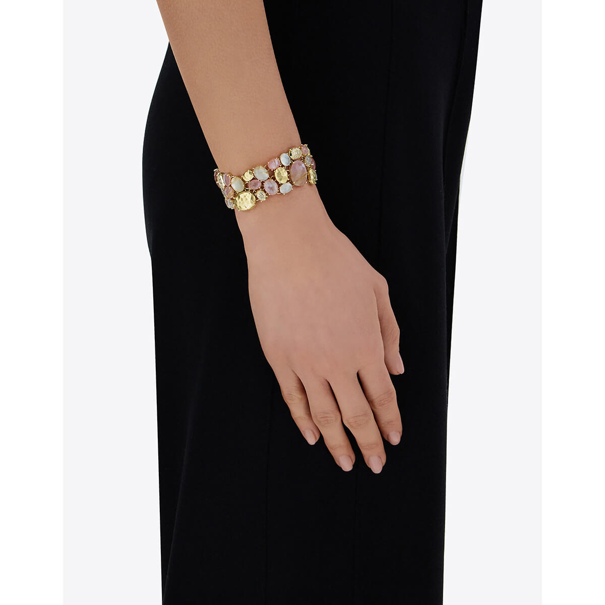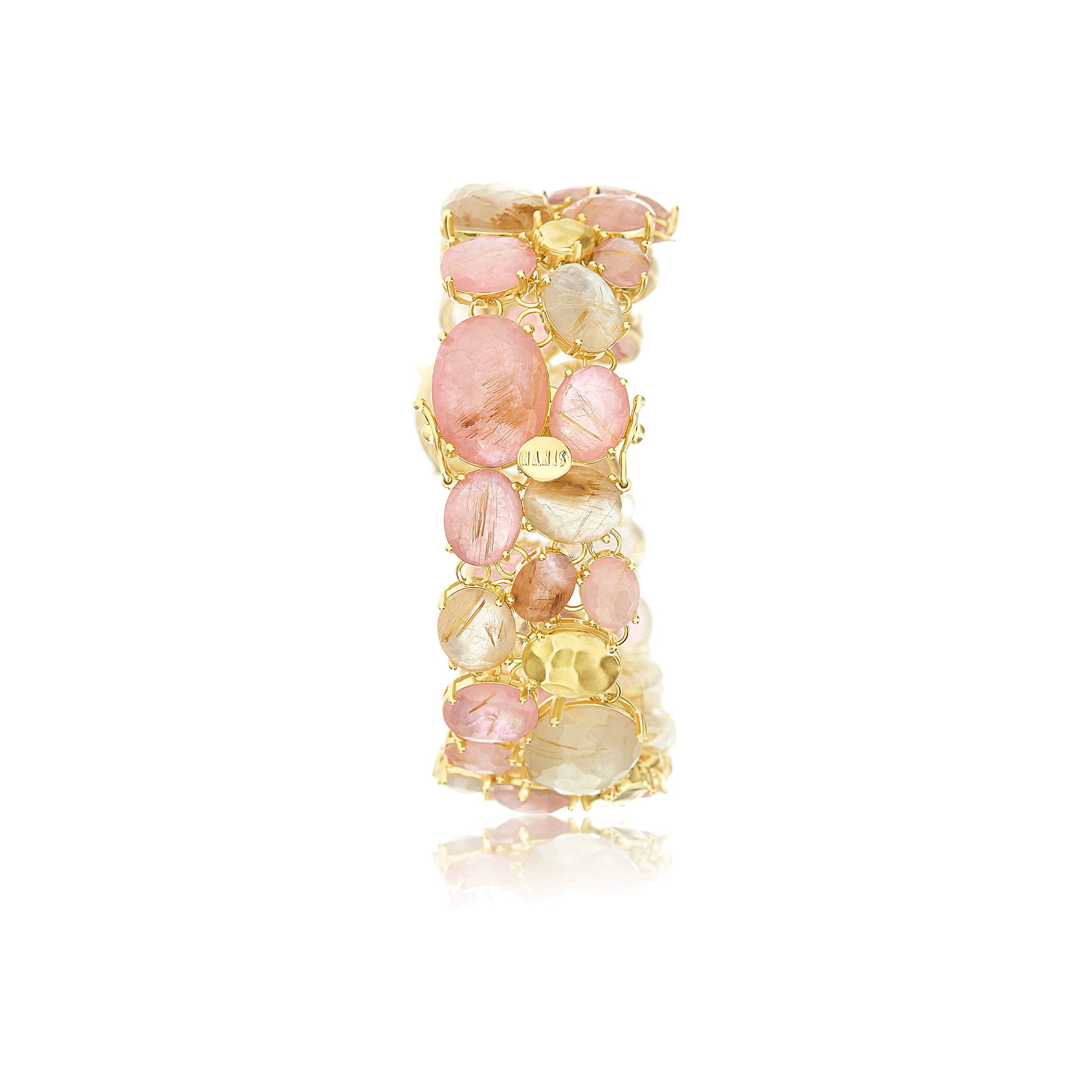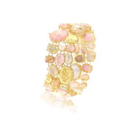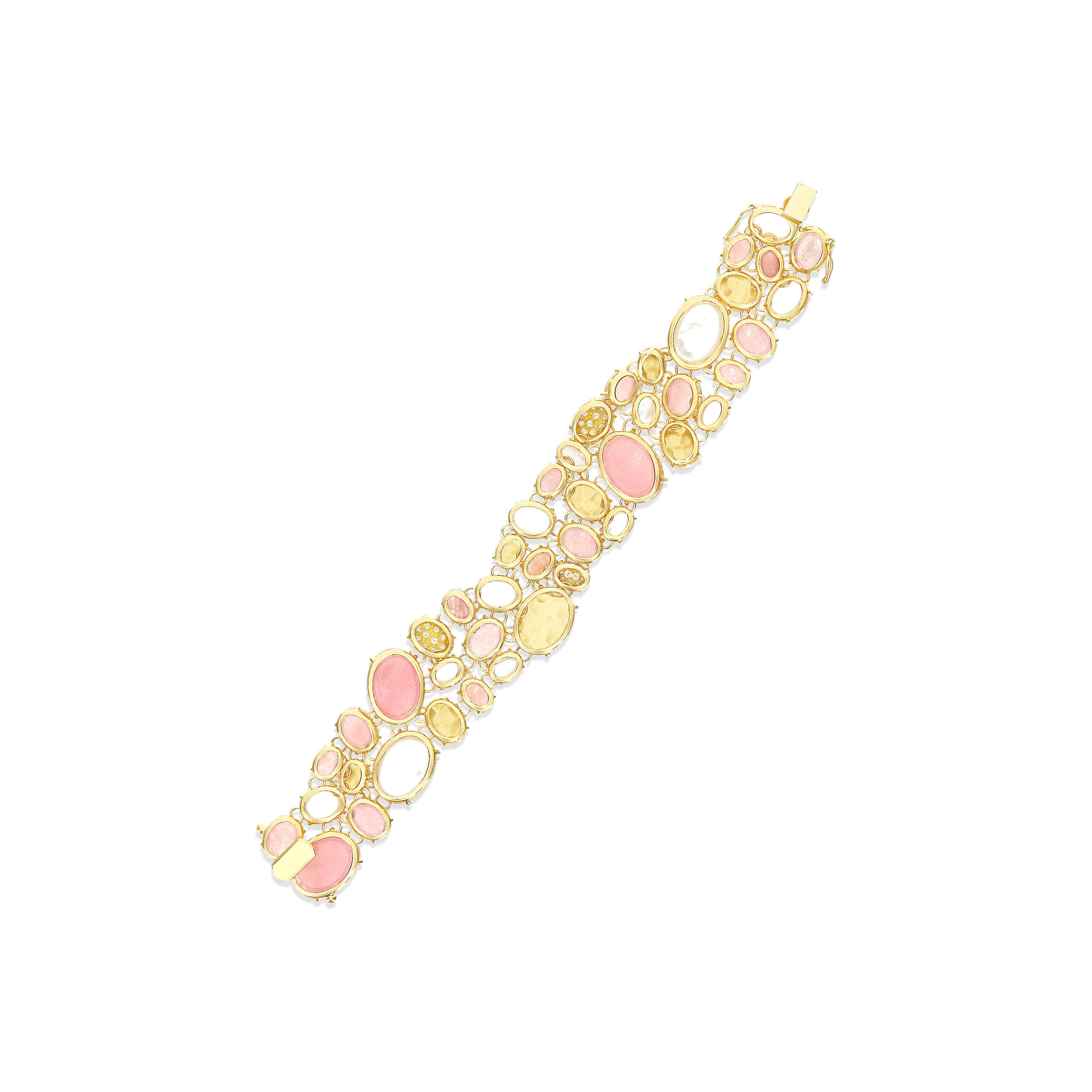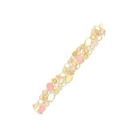 Armband aus 750/- Gelbgold mit Rutilquarz, rosa Jade, Perlmutt und Brillanten (0,27 ct.)Länge 18 cm
