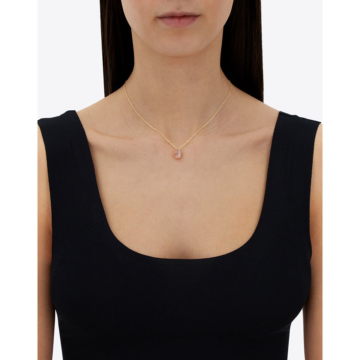 Kette aus 750/- Gelbgold mit Rutilquarz, rosa Jade und PerlmuttLänge 45 cm