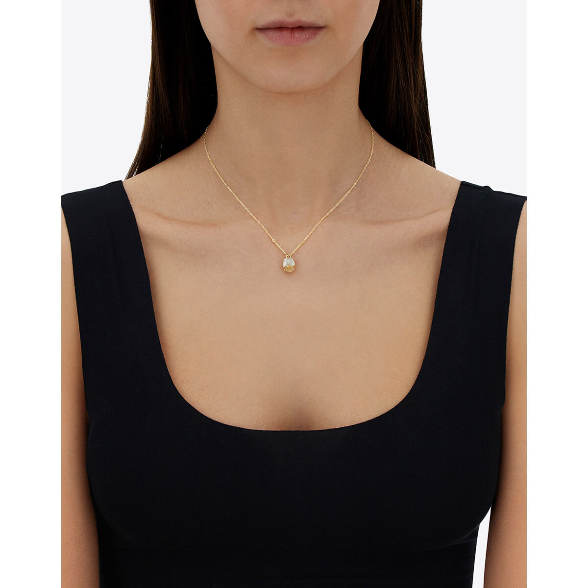 Kette aus 750/- Gelbgold mit Rutilquarz und PerlmuttLänge 45 cm