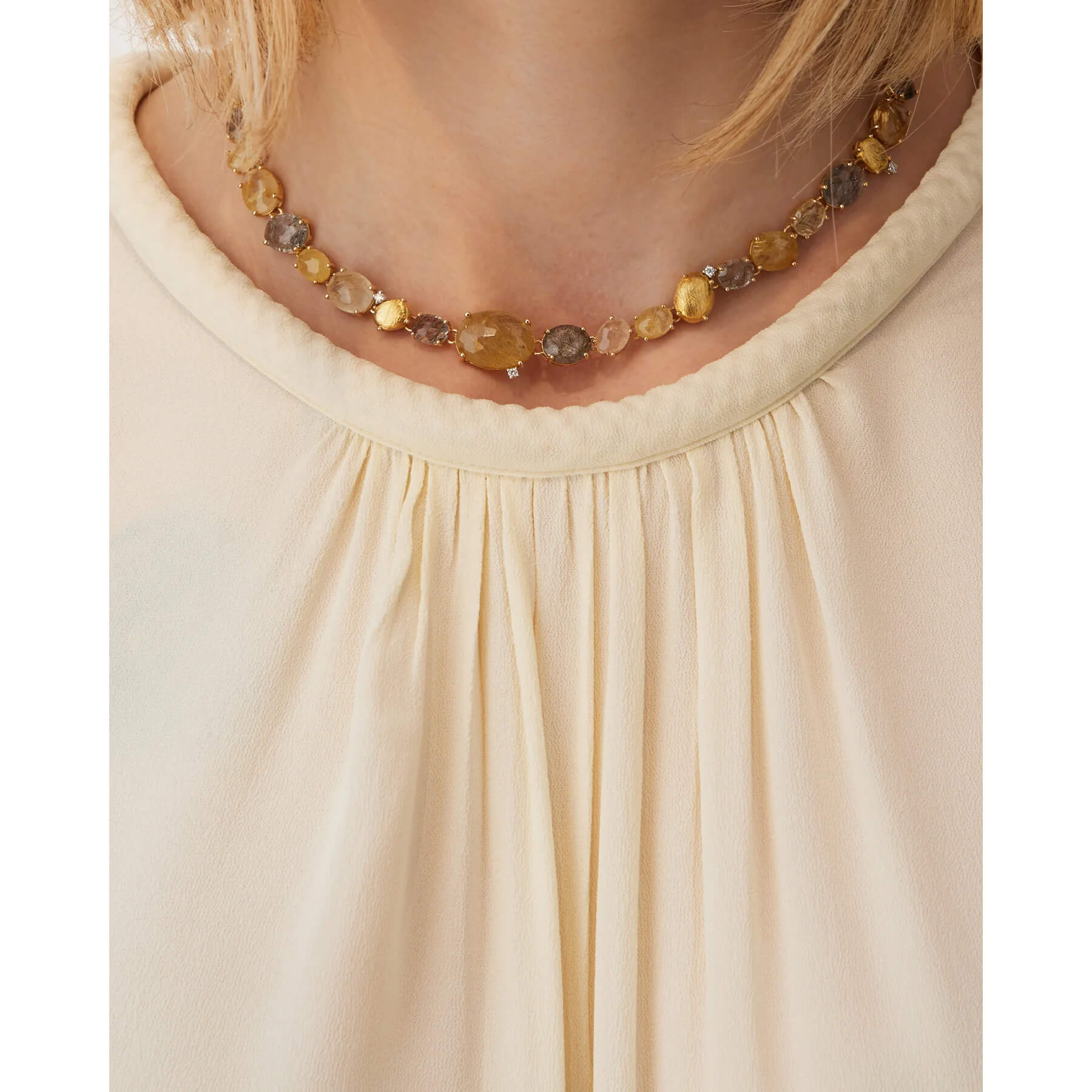 Collier aus 750/- Gelbgold mit 31 RutilquarzenProduktspezifikationen