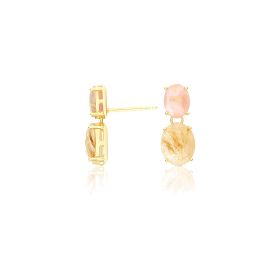 Ohrstecker aus 750/- Gelbgold mit Rutilquarz, rosa Jade und PerlmuttProduktspezifikationen