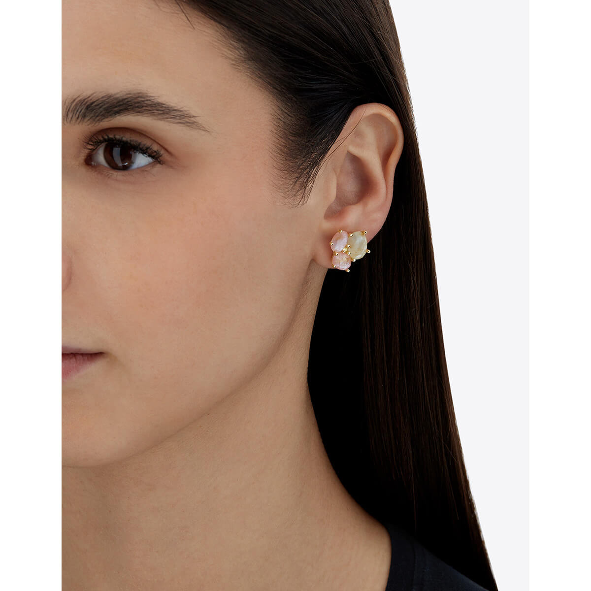 Ohrstecker aus 750/- Gelbgold mit Rutilquarz, rosa Jade und PerlmuttProduktspezifikationen
