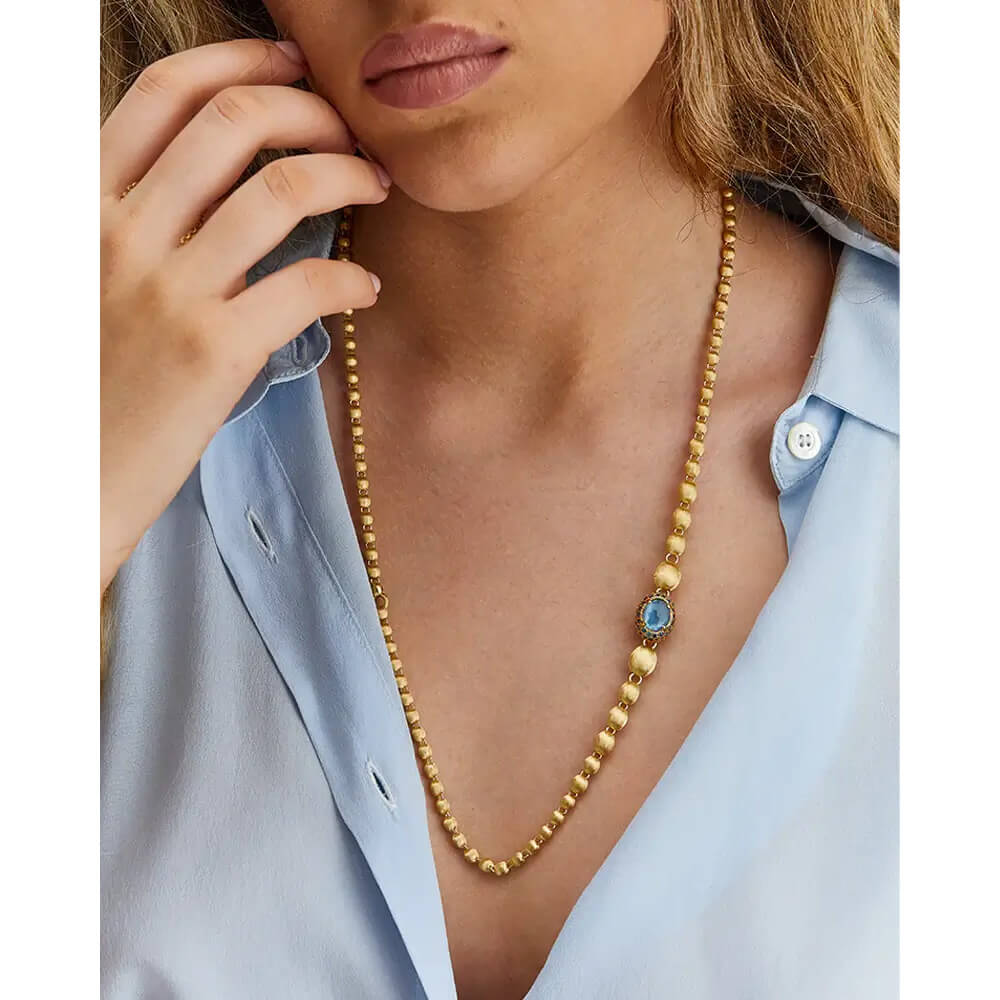 Diese Halskette aus 750/- Gold ist ein Paradebeispiel für die "iconic pieces", die Lauras Konzept von Schmuck am besten verkörpern. Die herausragende Handwerkskunst und Vielseitigkeit zeigen sich in einem doppelseitigen Anhänger, der nicht nur auf beiden Seiten interpretiert werden kann, sondern auch auf zwei verschiedene Arten mit der Kette verbunden werden kann: als Lariat oder auf klassische Weise. Ein zeitgemäßes Must-have, das Sie immer wieder begleiten und überraschen wird!Produktspezifikationen