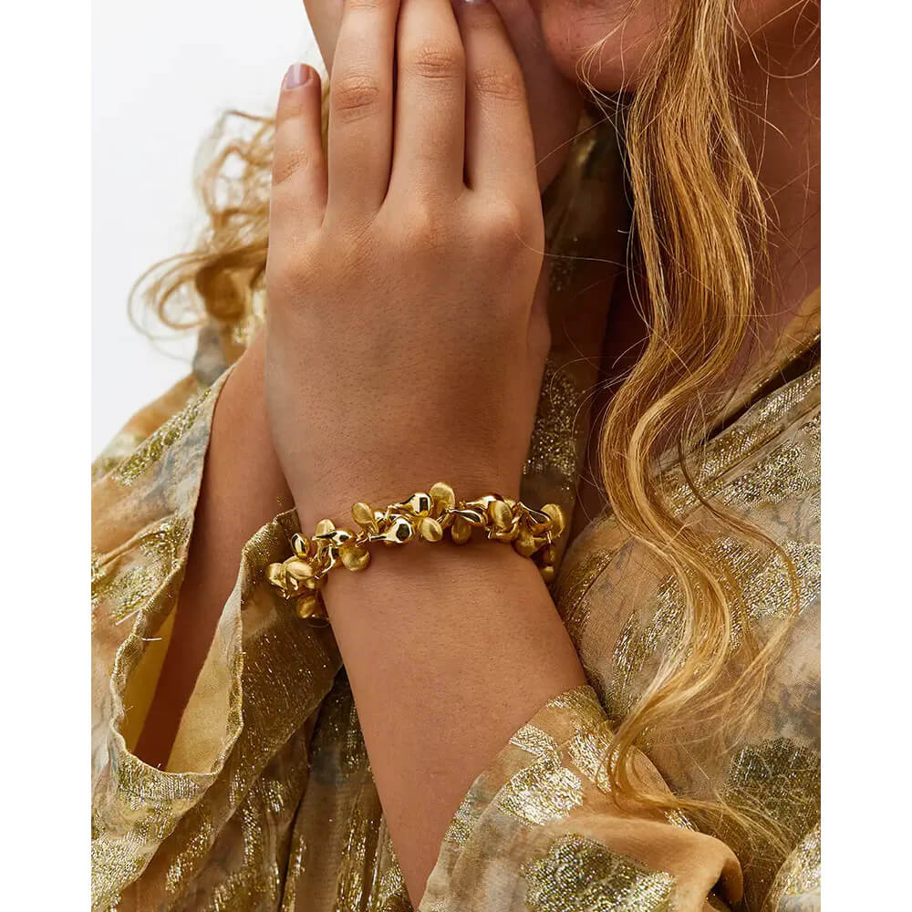 Als eines der herausragenden Werke von Nanis verkörpert TRASFORMISTA meisterhaft Luxus, Eleganz und Vielseitigkeit und wird zu einem zeitlosen Schmuckstück. Die Vielseitigkeit, die seit jeher ein Merkmal unserer Marke ist, findet in diesem Armreif aus 750/- Gold ihren vollkommenen Ausdruck und verschmilzt mit Genialität. Dieser Armreif verwandelt sich fast wie durch Magie mit einer einfachen Berührung und passt sich mühelos jeder Gelegenheit an. Um dieses Schmuckstück zu vervollkommnen, hat Laura, die all ihre Kreationen persönlich testet, einen speziellen „One-Touch“-Verschluss entwickelt, der es ermöglicht, den Armreif vollständig autonom zu öffnen und zu schließen. Trasformista ist für Frauen jeden Alters gedacht, von Müttern bis zu Töchtern, und für alle Frauen, die sich täglich stilvoll kleiden möchten.Produktspezifikationen