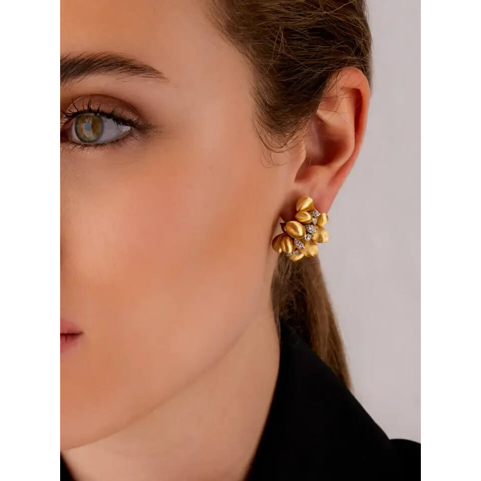 Diese ikonischen Ohrringe aus 750/- Gold strahlen einen klassisch luxuriösen Charme aus und sind handgefertigte Kunstwerke, verziert mit Diamant-Pavé-Tropfen. Laura, die jede ihrer Kreationen persönlich testet, hat für diese Ohrringe spezielle Stecker entworfen. Diese verfügen über eine Lamelle, die den oberen Teil des Ohrrings stützt und so einen perfekten Halt gewährleistet.Produktspezifikationen