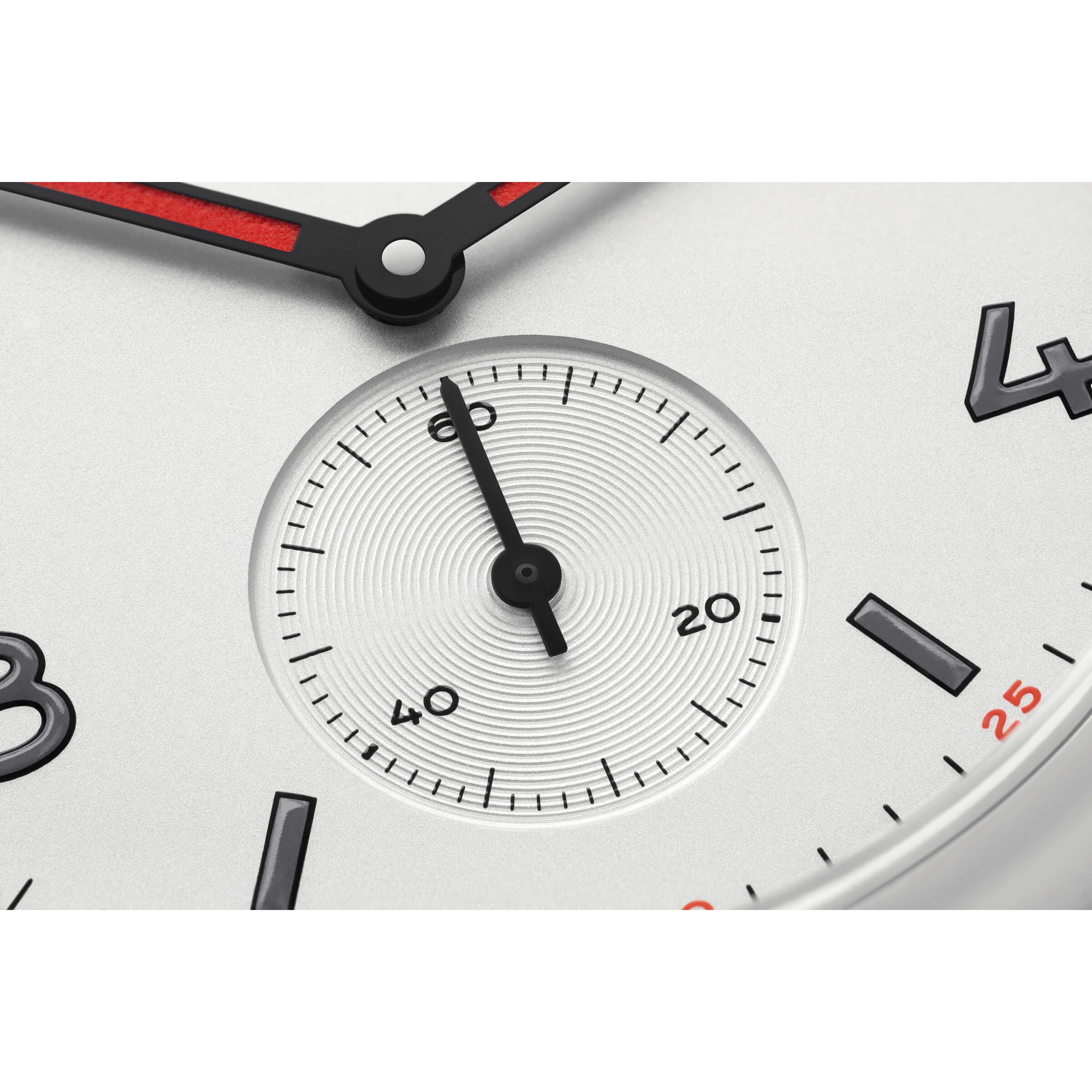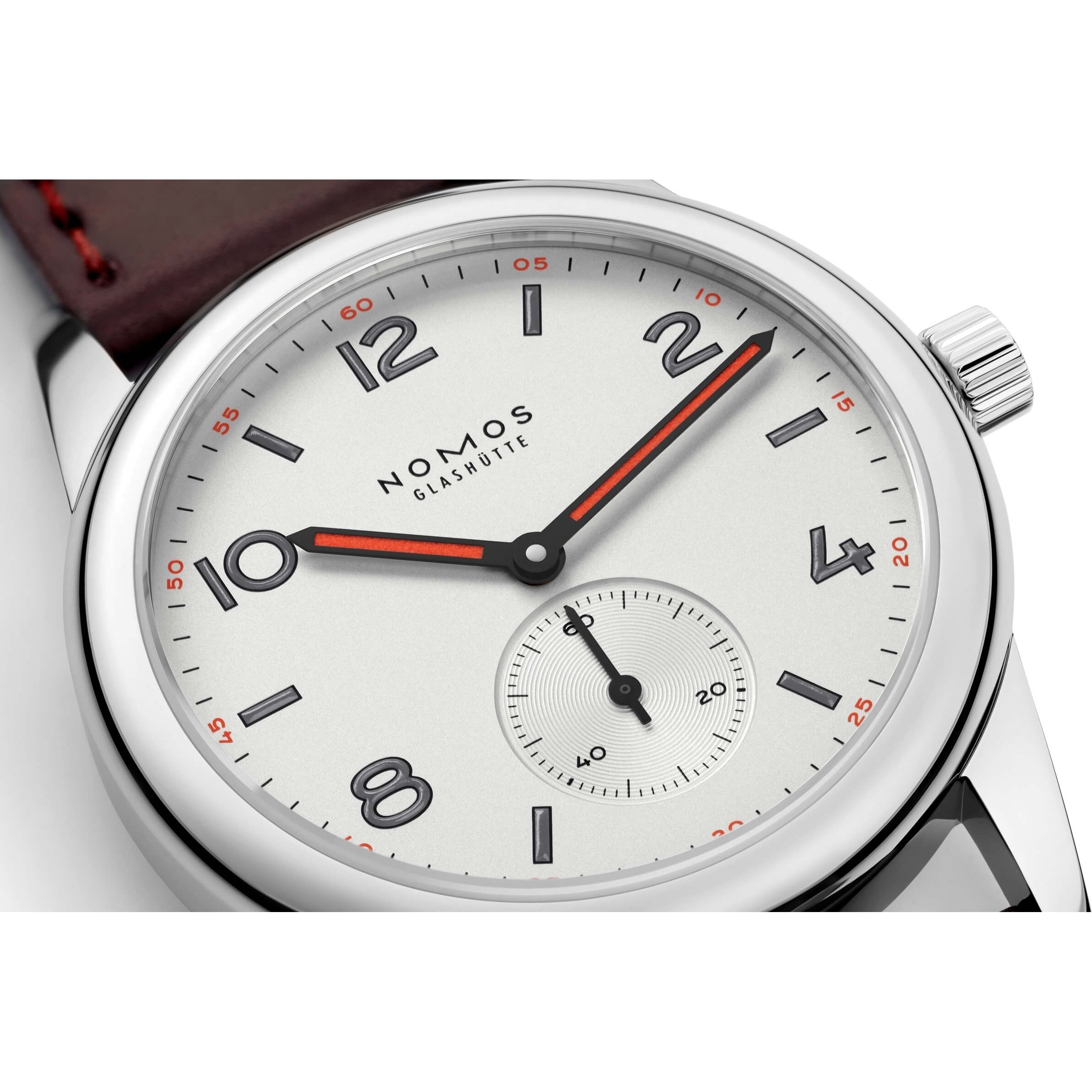 Sportlich, jung und unkonventionell: Der Club nimmt Zuneigungsbekundungen (und andere Erschütterungen) gelassen hin. Sein Edelstahlgehäuse und das Saphirglas bieten robusten Schutz - hier kann nichts passieren. Die markanten Zeiger ziehen selbstbewusst ihre Kreise auf dem weiß versilberten Zifferblatt. Und das NOMOS-Manufakturkaliber Alpha garantiert höchste Präzision.Produktspezifikationen