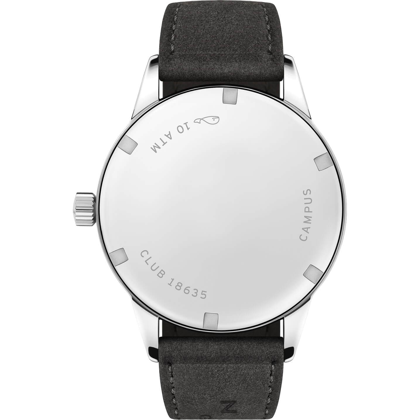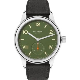 Die Club Campus All Olive steht für einen selbstbestimmten Lebensstil und den Einstieg in die Welt der mechanischen Uhren. Mit ihrem Handaufzugswerk, dem sportlichen Charakter und dem markanten Design ist sie ein vielseitiger Begleiter für jeden Tag – präzise Glashütter Uhrmacherkunst, geschaffen für viele Jahre. Das kräftige olivgrüne Zifferblatt verleiht der Uhr eine besondere Ausstrahlung. Gelbe Konturen um die Stundenmarkierungen und rosafarbene Minutenziffern setzen moderne Akzente und sorgen für einen spannenden Kontrast. Typisch für Club Campus kombiniert das Zifferblatt arabische und römische Ziffern – wobei die Vier zeitgemäß als „IV“ dargestellt wird. Dank Super-LumiNova auf Zeigern und Indizes bleibt die Uhr auch bei Dunkelheit hervorragend ablesbar. Abgerundet wird das Modell durch ein anthrazitfarbenes Veloursband in veganer Ausführung, das den jungen, ausdrucksstarken Look stilvoll unterstreicht. Das robuste Edelstahlgehäuse misst 36 Millimeter im Durchmesser und ist mit nur 8,2 Millimetern angenehm flach. Zudem ist die Club Campus all olive bis 10 atm wasserdicht und damit auch zum Schwimmen geeignet.Produktspezifikationen