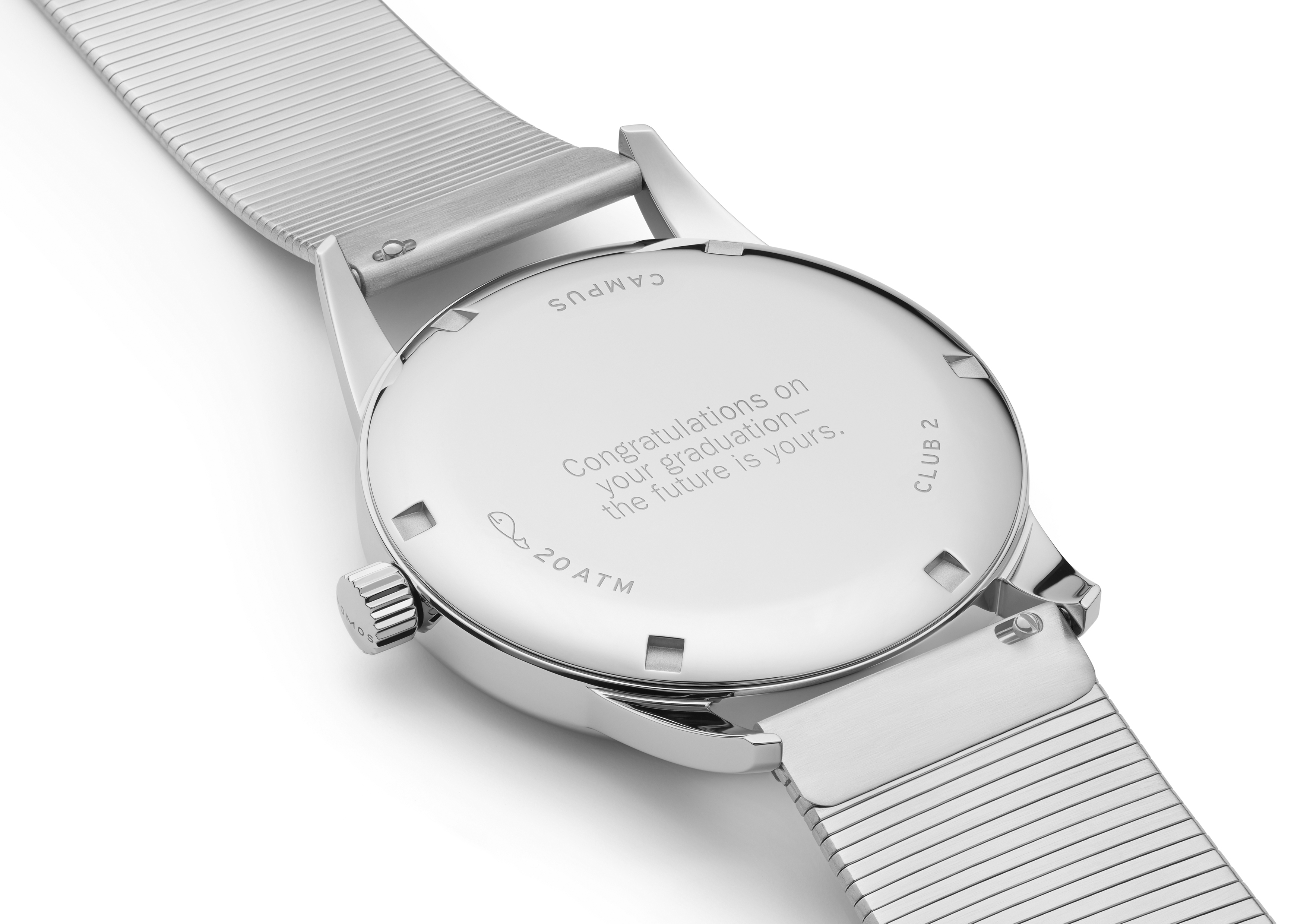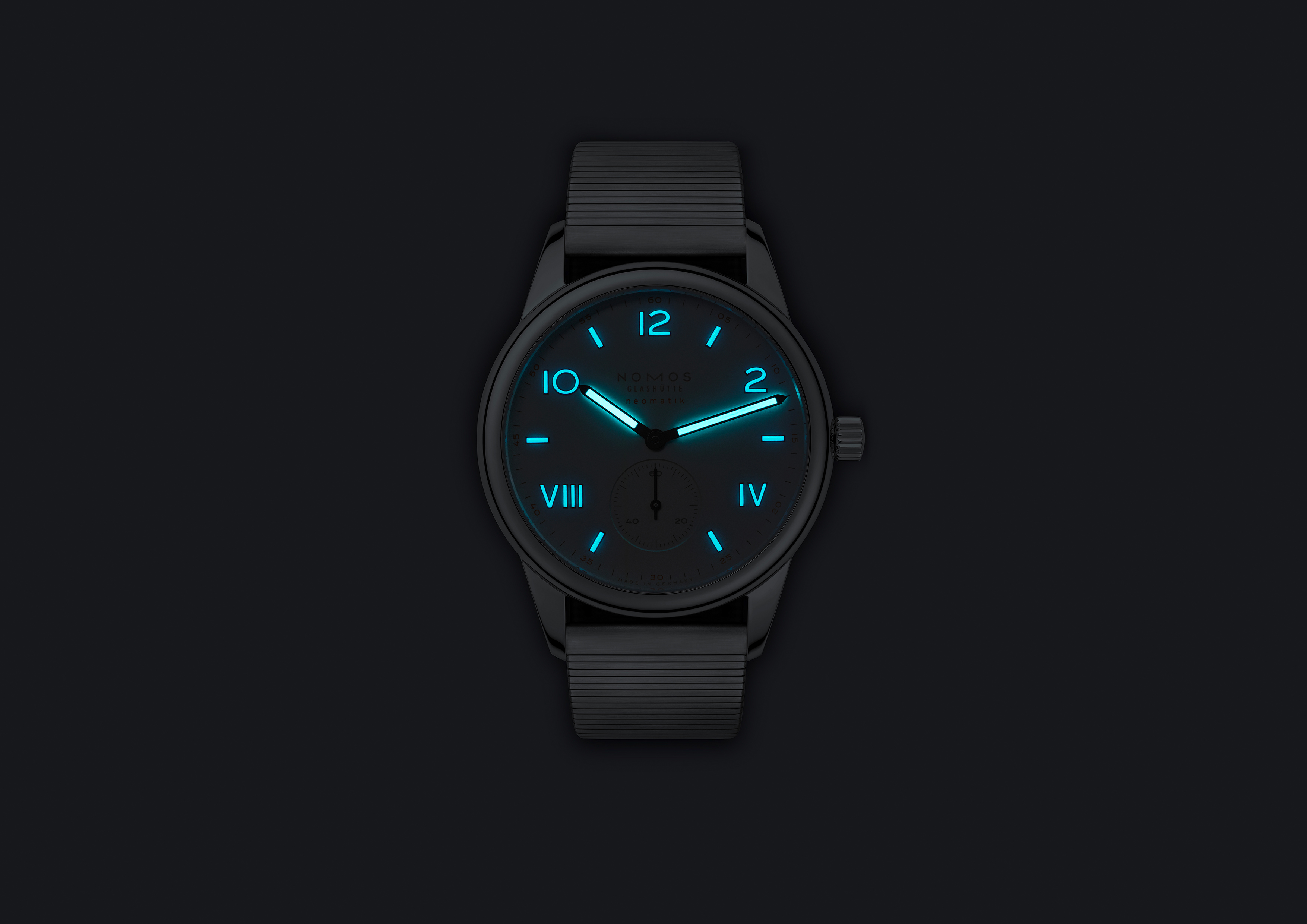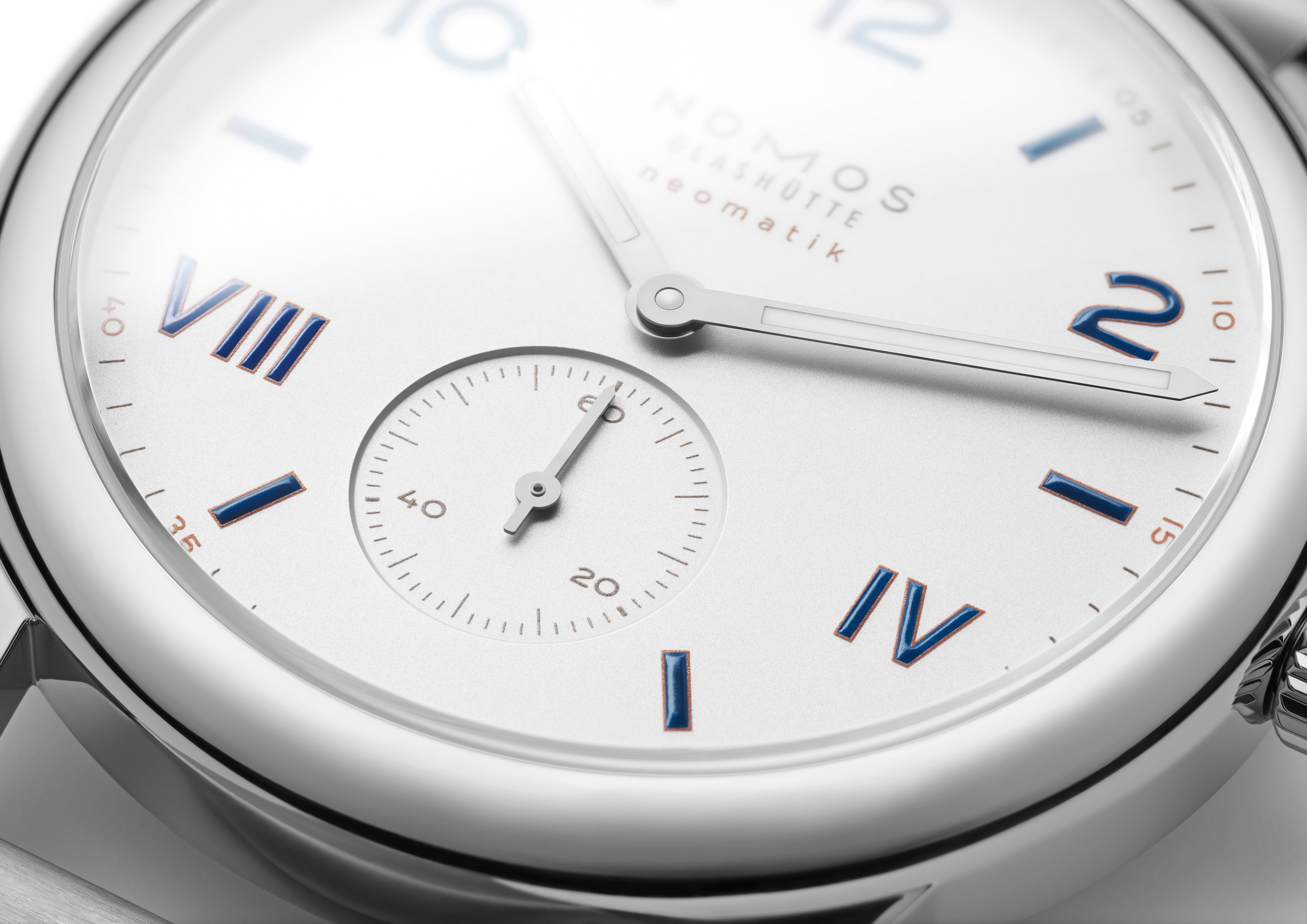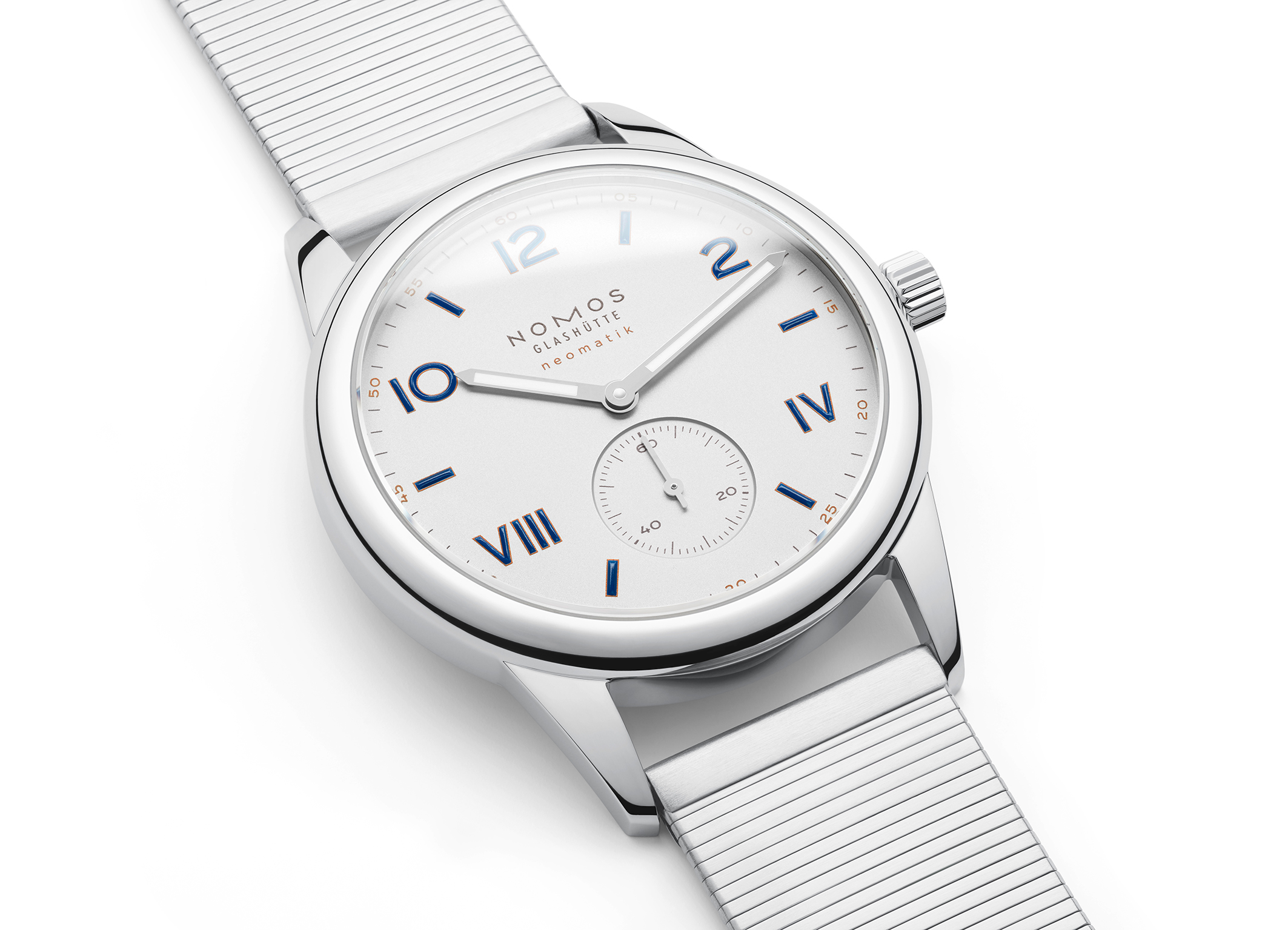 NOMOS Glashütte Club Campus neomatik 39 mit Stahlboden: Das vielleicht beste Geschenk, das man jemandem (oder sogar sich selbst) machen kann: Club Campus neomatik 39 ist eines von drei neuen Automatikmodellen der Serie Campus. Ausnehmend flach, höchst präzise und erschwinglich – eine Uhr für den nächsten Schritt im Leben, ob mit Krawatte oder ohne. Neu bei NOMOS: das Metallband.Produktspezifikationen
