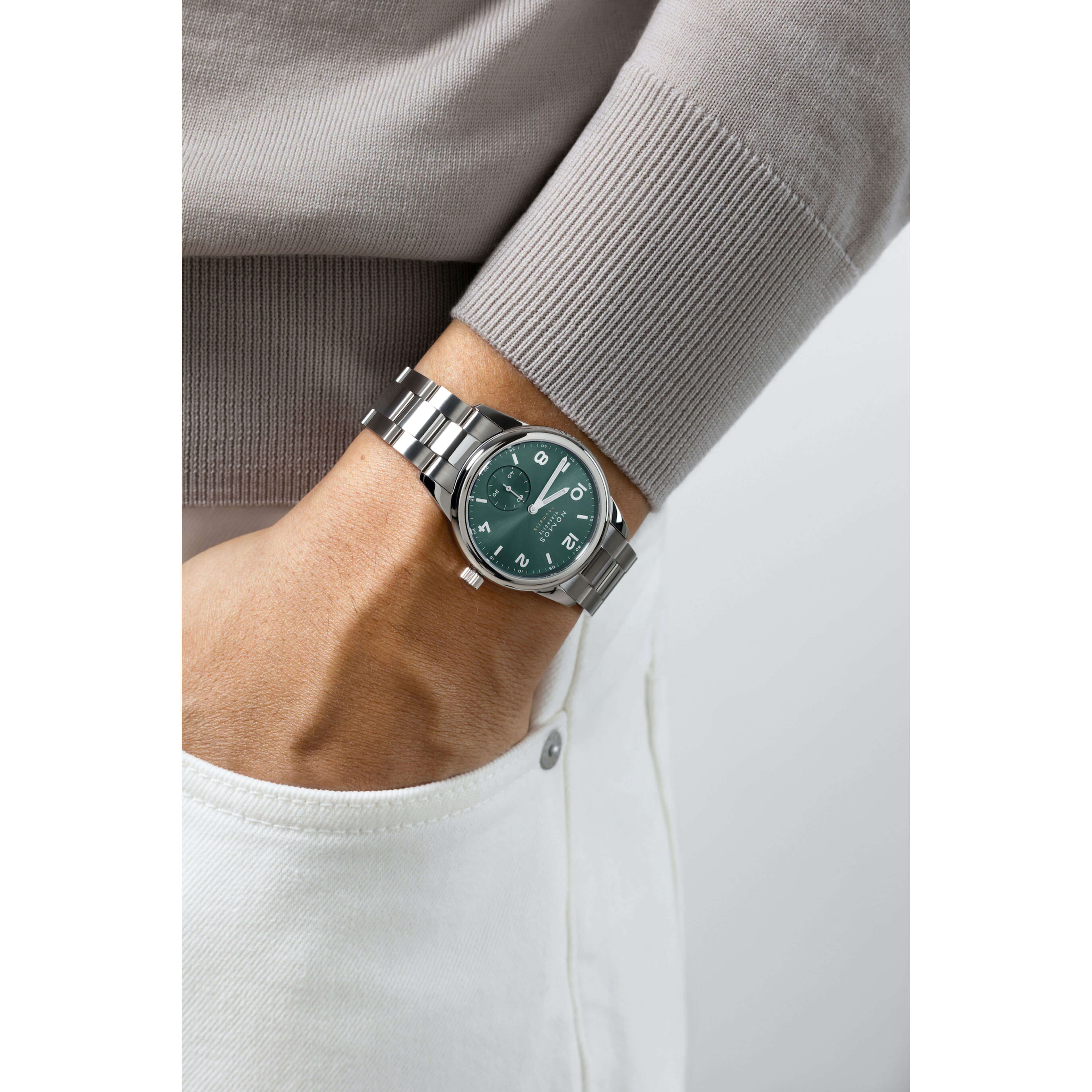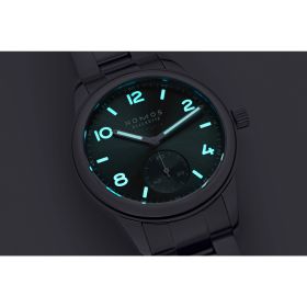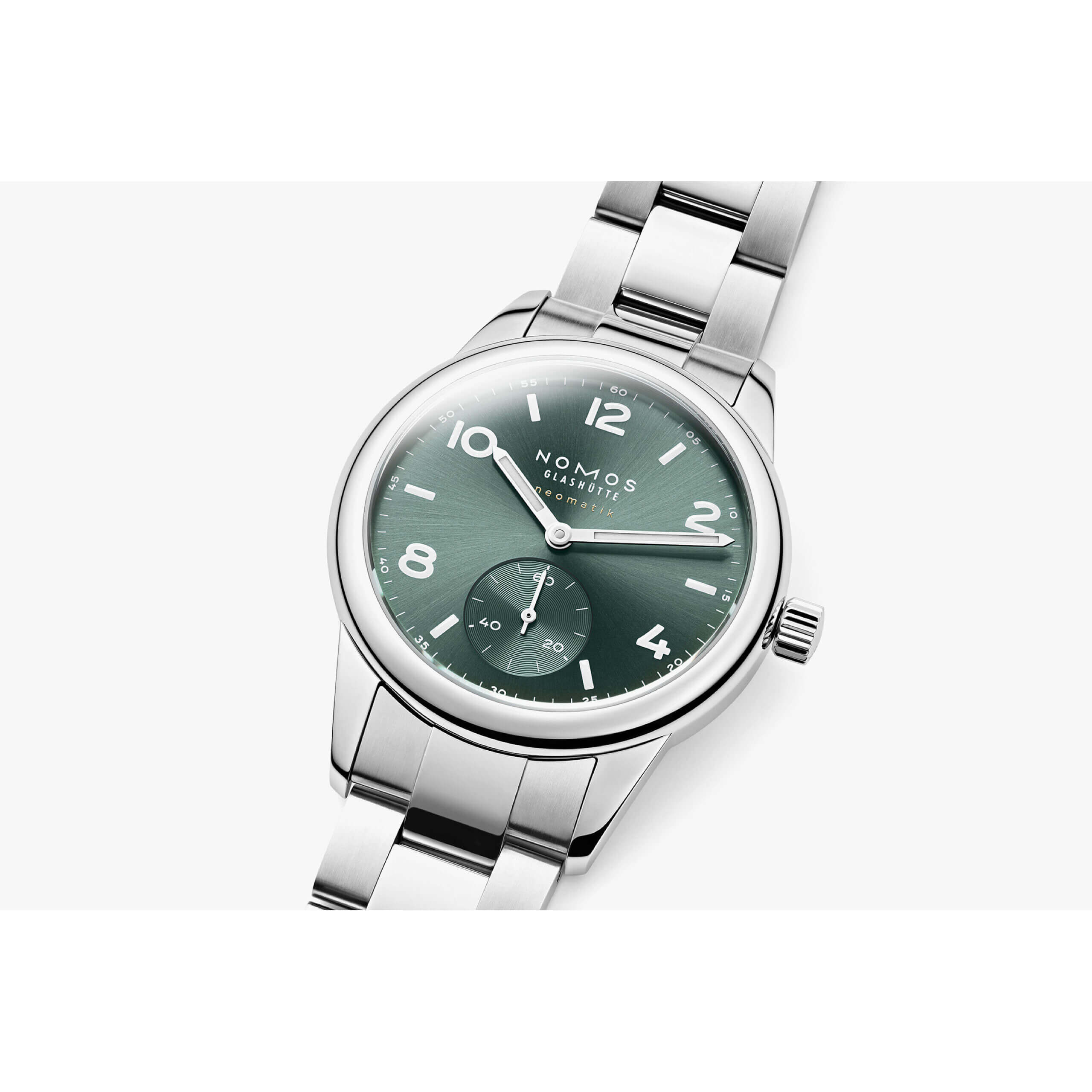 Club Sport neomatik in Petrolgrün hat einen Gehäusedurchmesser von 37 Millimetern – die Automatikuhr mit dem aufwendigen Strahlenschliff glänzt damit an jedem Handgelenk. In motivierender Sportlichkeit begleitet sie durch den bewegten Alltag. Angetrieben wird das leistungsstarke Modell von DUW 3001, dem innovativen Manufakturkaliber von NOMOS Glashütte. Das bei NOMOS entwickelte und gefertigte Uhrwerk ist nur 3,2 Millimeter hoch und für beste Ganggenauigkeit mit dem NOMOS-Swing-System ausgestattet. Wer, vom Schreibtisch kommend, beim Sprung in den Pool keine Zeit verlieren will, ist mit dieser Uhr gut beraten, denn Club Sport neomatik petrol ist bis 20 atm wasserdicht und bleibt beim Schwimmen einfach am Handgelenk.Produktspezifikationen