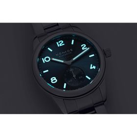 Das frische arktikblaue Club Sport neomatik Gehäuse mit einem Durchmesser von 37 mm – diese Automatikuhr mit edlem Sonnenschliff strahlt an jedem Handgelenk. In motivierender Sportlichkeit begleitet sie durch den bewegten Alltag. Angetrieben wird das Hochleistungsmodell vom DUW 3001 Uhrwerk, dem innovativen Manufakturwerk von NOMOS. Das von NOMOS entwickelte und gefertigte Uhrwerk ist nur 3,2 mm hoch und für höchste Präzision mit dem NOMOS-Schwingsystem ausgestattet. Wer, vom Schreibtisch kommend, beim Sprung in den Pool keine Zeit verlieren will, ist mit dieser Uhr gut beraten, denn Club Sport neomatik polar ist bis 20 atm wasserdicht und bleibt beim Schwimmen einfach am Handgelenk.Produktspezifikationen