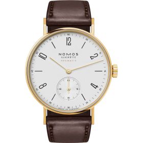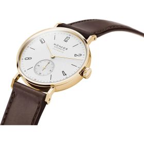 Die Tangente Gold neomatik doré von NOMOS Glashütte verbindet ausgewogene Proportionen mit einer reduzierten, unverkennbaren Gestaltung. Das Gehäuse aus 18-karätigem Massivgold und die fein abgestimmten goldenen Zeiger verleihen dem klaren Zifferblatt eine subtile, edle Ausstrahlung. Im Inneren arbeitet das hauseigene Automatikwerk DUW – präzise, zuverlässig und typisch NOMOS. Eine zeitlose Uhr, geschaffen für Stilbewusste, die Wert auf Beständigkeit legen.Produktspezifikationen