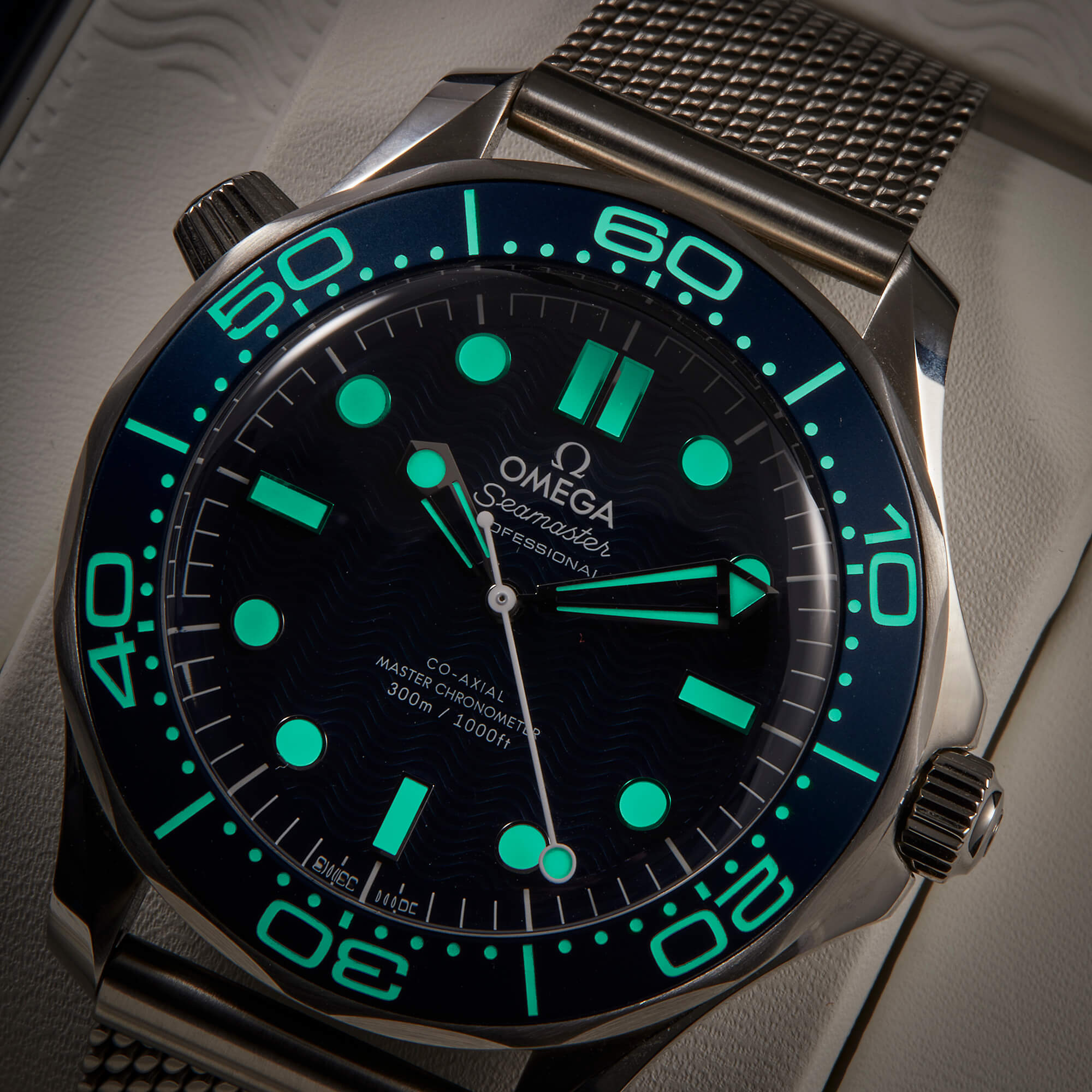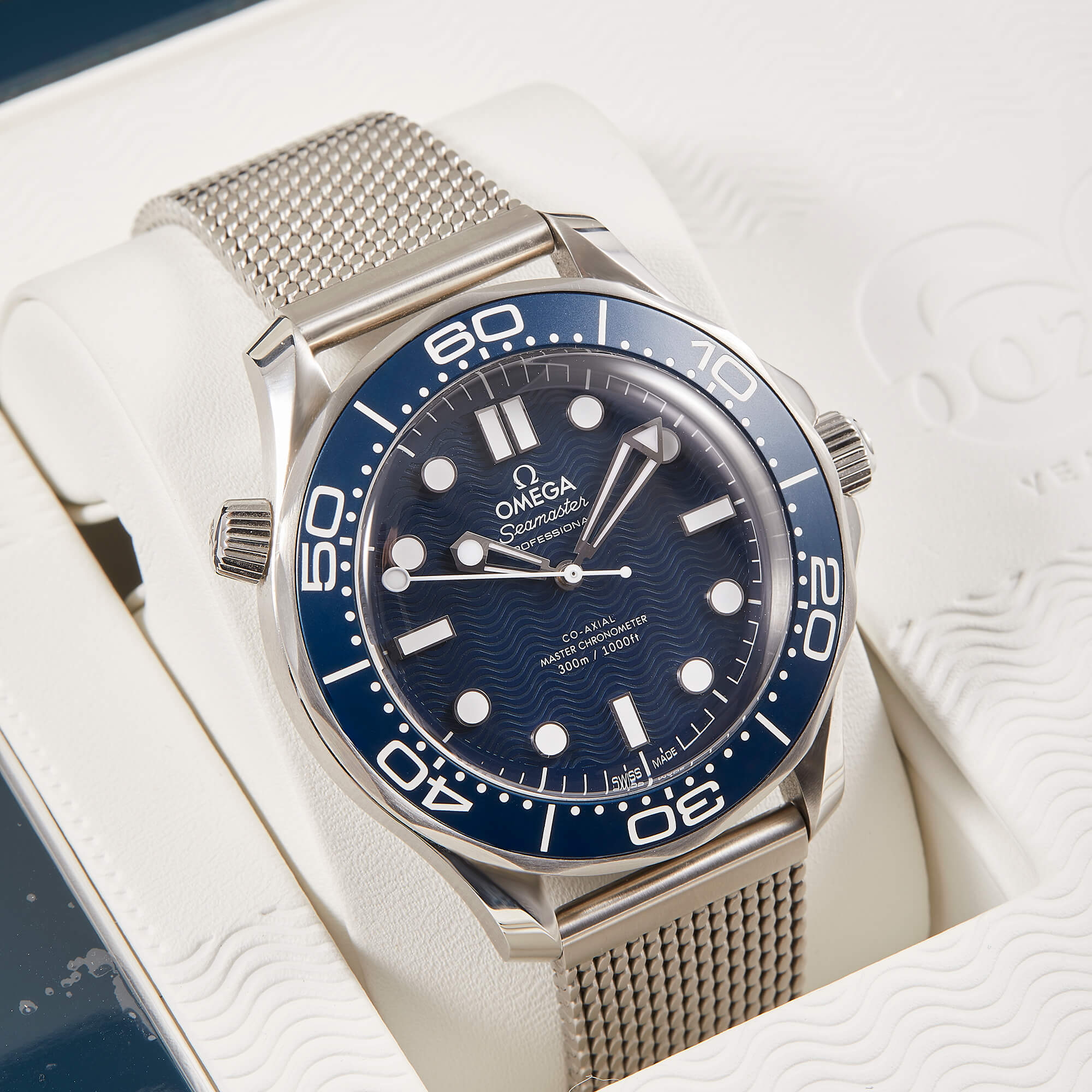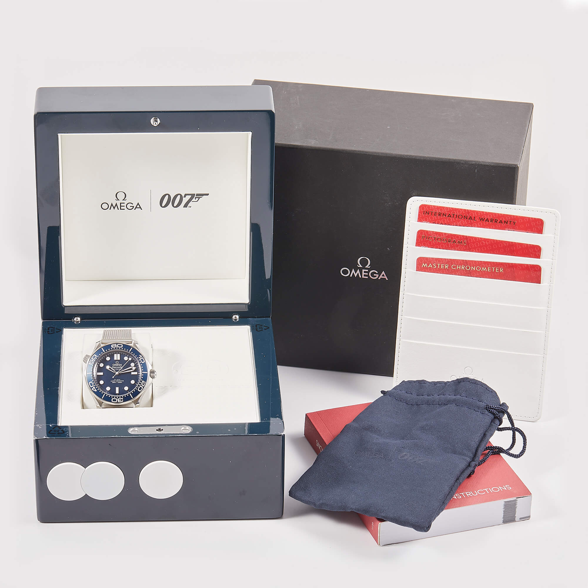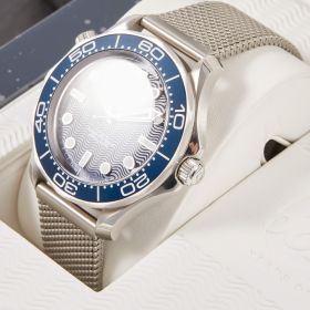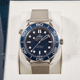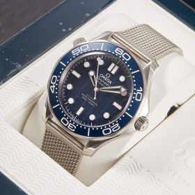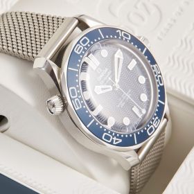 Die Omega Seamaster Diver 300M 60th Anniversary James Bond (Ref. 210.30.42.20.03.002) ist eine Hommage an 60 Jahre Agentenlegende. Mit ihrem markanten 42-mm-Edelstahlgehäuse, dem tiefblauen Zifferblatt und der gravierten Aluminiumeinlage auf der Lünette verkörpert sie den zeitlosen Stil von James Bond. Ein besonderes Highlight ist der animierte "007"-Sekundenzeiger auf dem Gehäuseboden, der den legendären Gunbarrel-Intro zitiert. Diese Uhr kombiniert höchste Präzision durch das Co-Axial Master Chronometer Kaliber 8806 mit einem markanten Design. Ein Muss für Bond-Fans und Uhrenliebhaber gleichermaßen!