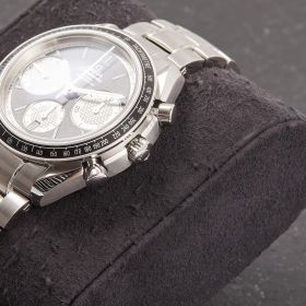 Die Omega Speedmaster Racing Referenz 326.30.40.50.01.002 besticht durch ihr markantes Reverse-Panda-Zifferblatt mit schwarzem Grund und weißen Totalisatoren. Die Uhr befindet sich im ungetragenen Zustand, wird im vollständigen Fullset geliefert und vereint sportliche Dynamik mit klassischer Speedmaster-Ästhetik. Bei diesem Inserat wurden Beispielbilder verwendet - sprechen Sie uns gern persönlich an und wir senden Ihnen Fotos der tatsächlichen Uhr im Nachgang.