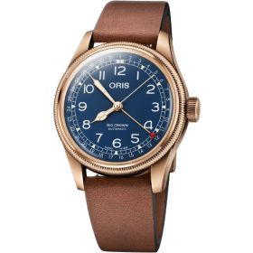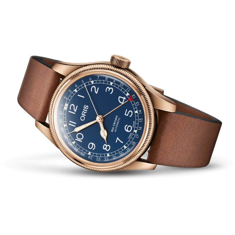 Oris Big Crown Bronze Pointer Date - 40 mm Gehäuse aus Bronze mit Edelstahlboden. Blaues Zifferblatt mit Ziffern und Zeigen (Superluminova beschichtet). Lederarmband mit Faltschließe.Produktspezifikationen