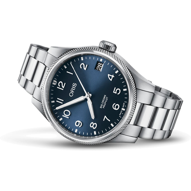 Oris Big Crown ProPilot Big Date - 41 mm Edelstahlgehäuse. Zifferblatt in dunkelblau. Edelstahlarmband mit Faltschließe.Produktspezifikationen