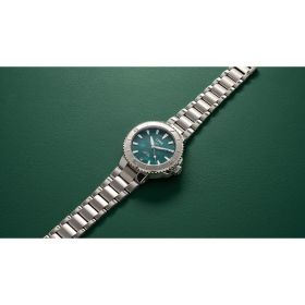 Der Netzeffekt: Um diese faszinierenden kaleidoskopischen Zifferblätter herzustellen, werden kleine Stücke in den Farben Grün, Blau und Weiß behutsam erwärmt, bis sie mit dem Grundmaterial verschmelzen. Beim Abkühlen härten sie zu einer dünnen Schicht aus. Diese Schicht wird dann präzise zugeschnitten und auf eine Dicke von nur 0,3 mm geschliffen. Das verwendete Material enthält keinerlei Zusätze, Füllstoffe oder Klebstoffe. Jedes einzelne Zifferblatt ist ein Unikat.Produktspezifikationen