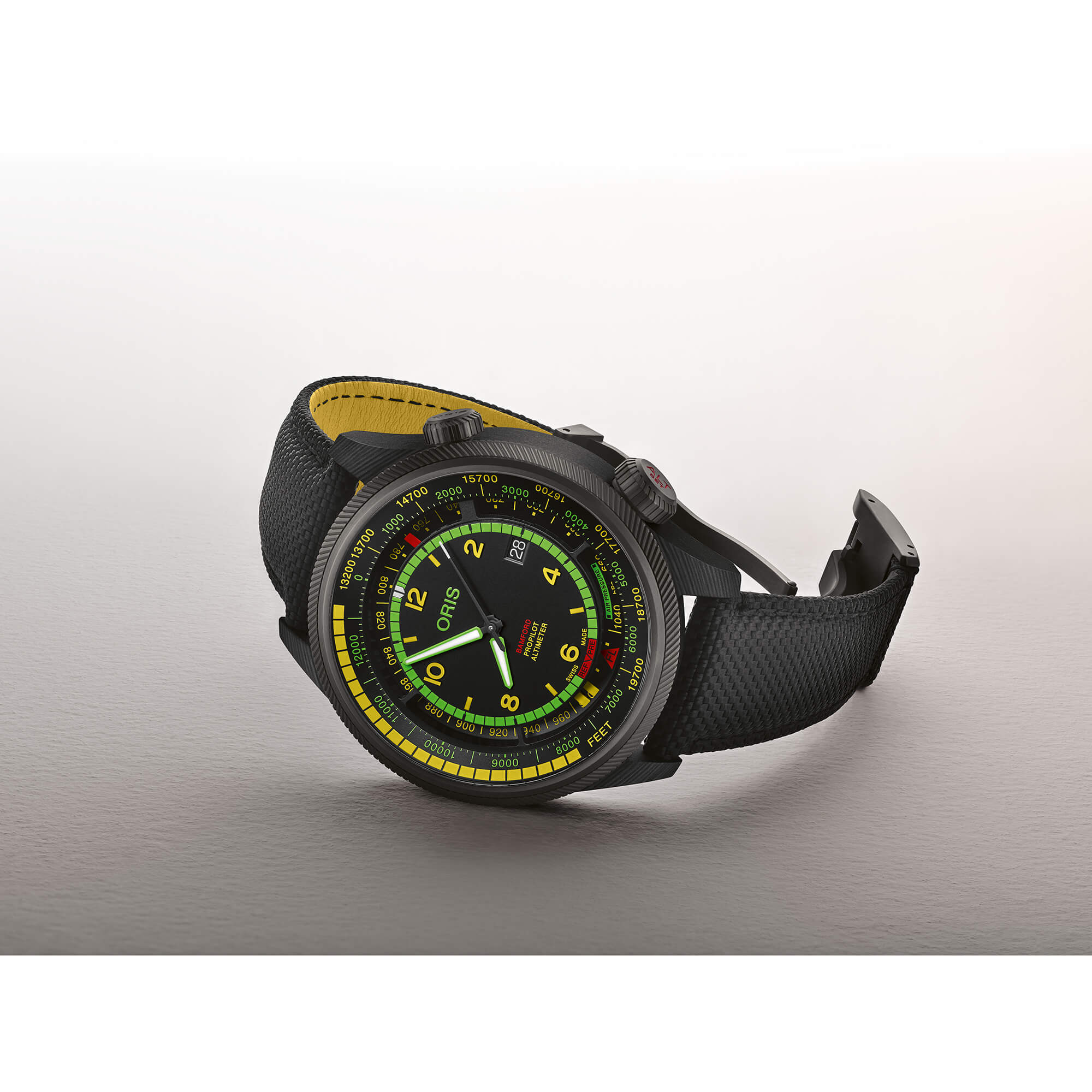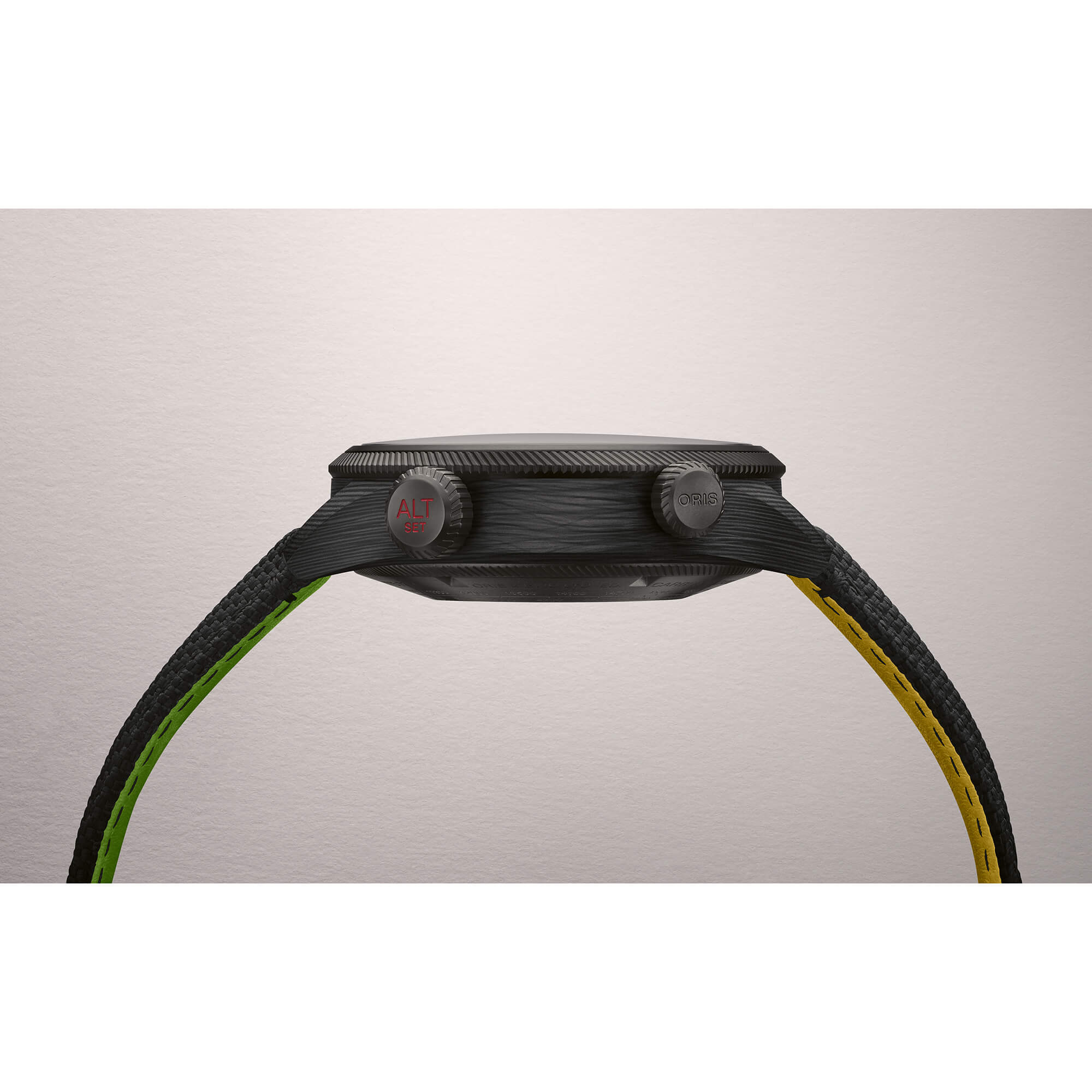 Oris x Bamford Watch Department – Limited Edition „Mission Control“: Die „Mission Control“ ist das Ergebnis der ersten Zusammenarbeit von Oris mit dem Londoner Bamford Watch Department – und bringt einen farbenfrohen, spacigen Look in die legendäre ProPilot Altimeter. Das auf 250 Stück limitierte Sondermodell vereint die ikonische Fliegeruhr mit einem einzigartigen Design, das an die unendlichen Weiten des Weltraums erinnert. Unter dem klar ablesbaren schwarzen Zifferblatt arbeitet das weltweit einzige Automatikwerk mit mechanischem Höhenmesser – ein echtes Meisterstück der Uhrmacherkunst. Das 47 mm Gehäuse besteht aus einem innovativen Kohlefaser-Titan-Verbund, leichter als Kunststoff und härter als Stahl, ergänzt durch eine graue PVD-Beschichtung. Mit einer Wasserdichtigkeit von 10 bar ist die Uhr robust genug für jedes Abenteuer. Technisch überzeugt die Mission Control mit dem Oris Kaliber 793-1: Automatischer Aufzug, Sekundenstopp, Datumsanzeige mit Schnellschaltung und einer Gangreserve von 56 Stunden. Abgerundet wird die Uhr durch ein sportliches Textilarmband und eine exklusive Spezialschatulle. Die Oris x Bamford „Mission Control“ ist nicht nur eine Hommage an die Raumfahrt, sondern auch eine Uhr „wo keine Uhr zuvor gewesen ist“.Produktspezifikationen