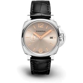 Panerai Luminor Due 42 mm - Edelstahlgehäuse, mechanisches Automatikwerk mit 3 Tagen Gangreserve, Zifferblatt elfenbein mit Sonnenschliff, fluoreszierenden arabischen Ziffern und Stundenmarkierungen, schwarzes Alligatorlederarmband- Durchmesser